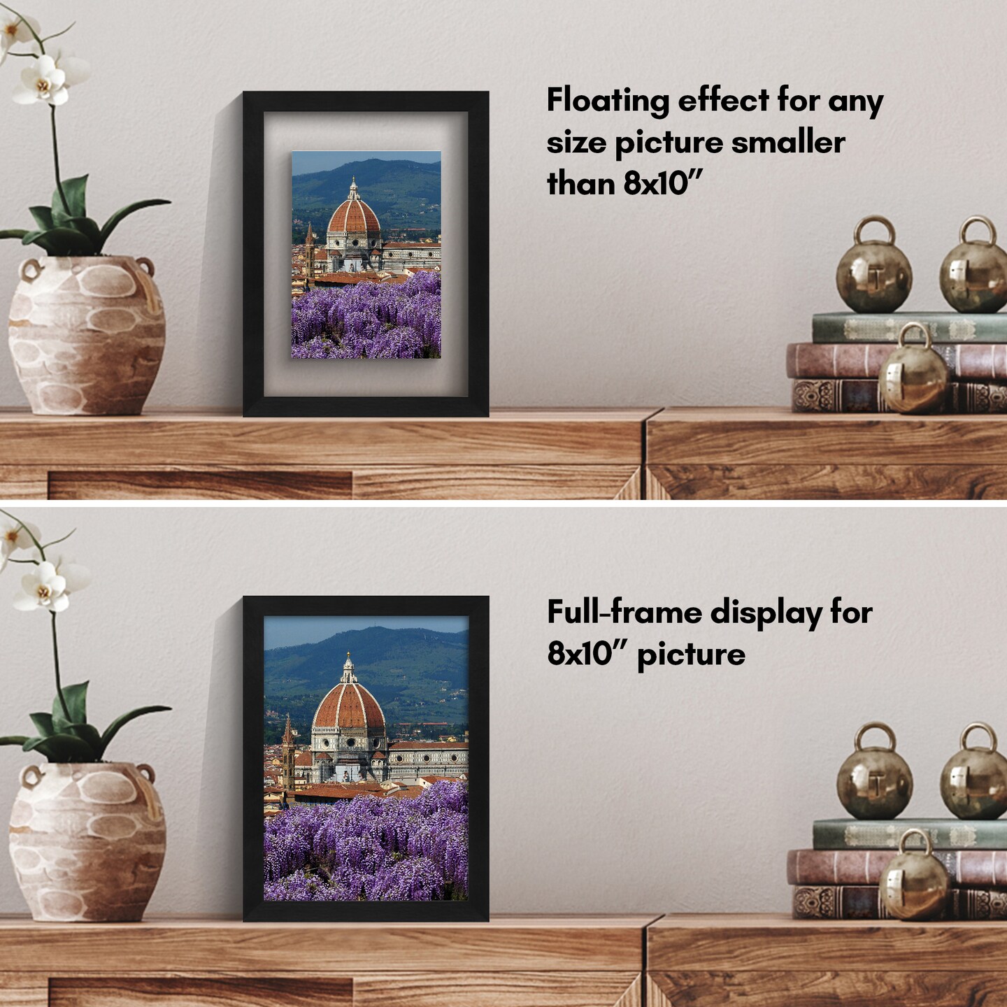 Americanflat Floating Picture Frame for Wall Art - Photo Frame with Floating Effect for Photos, Wall Art, and Pressed Flowers - Polished Glass Cover - Hanging Hardware