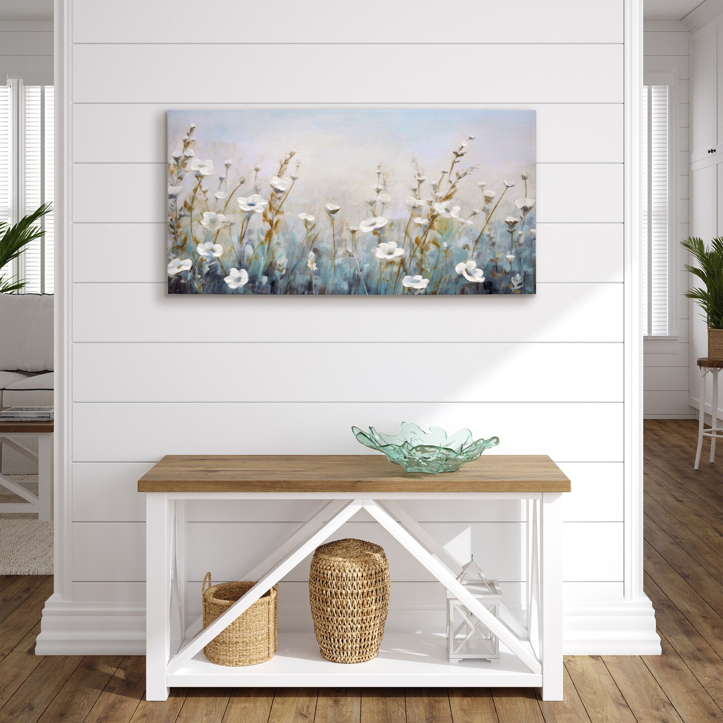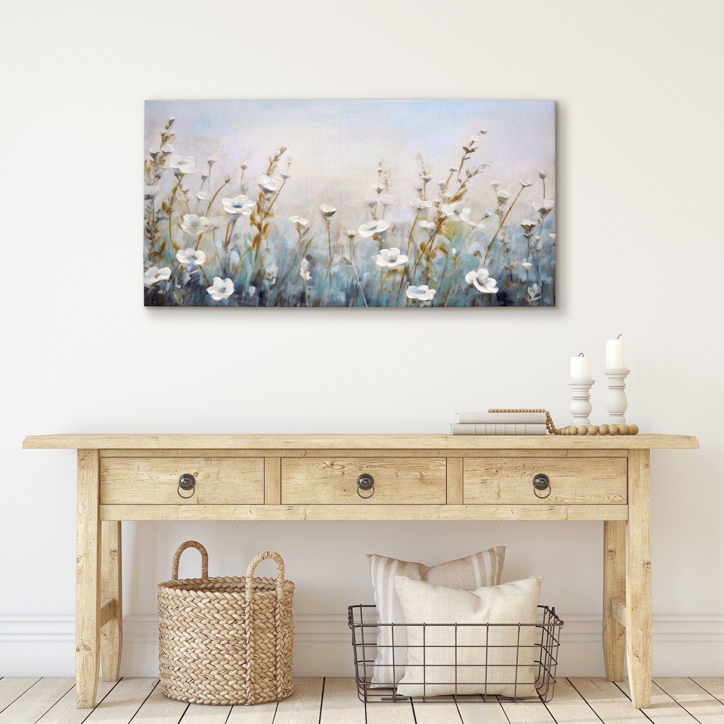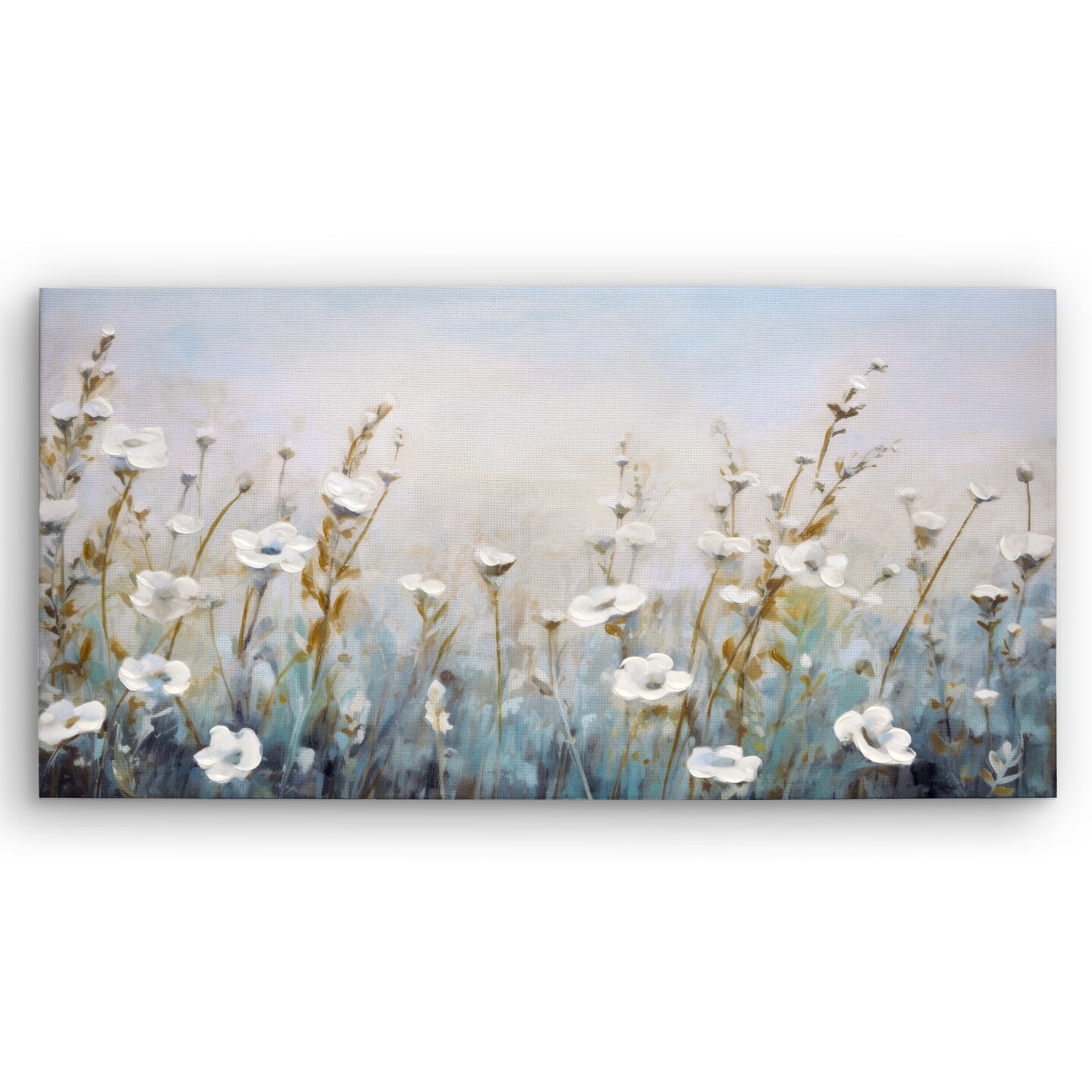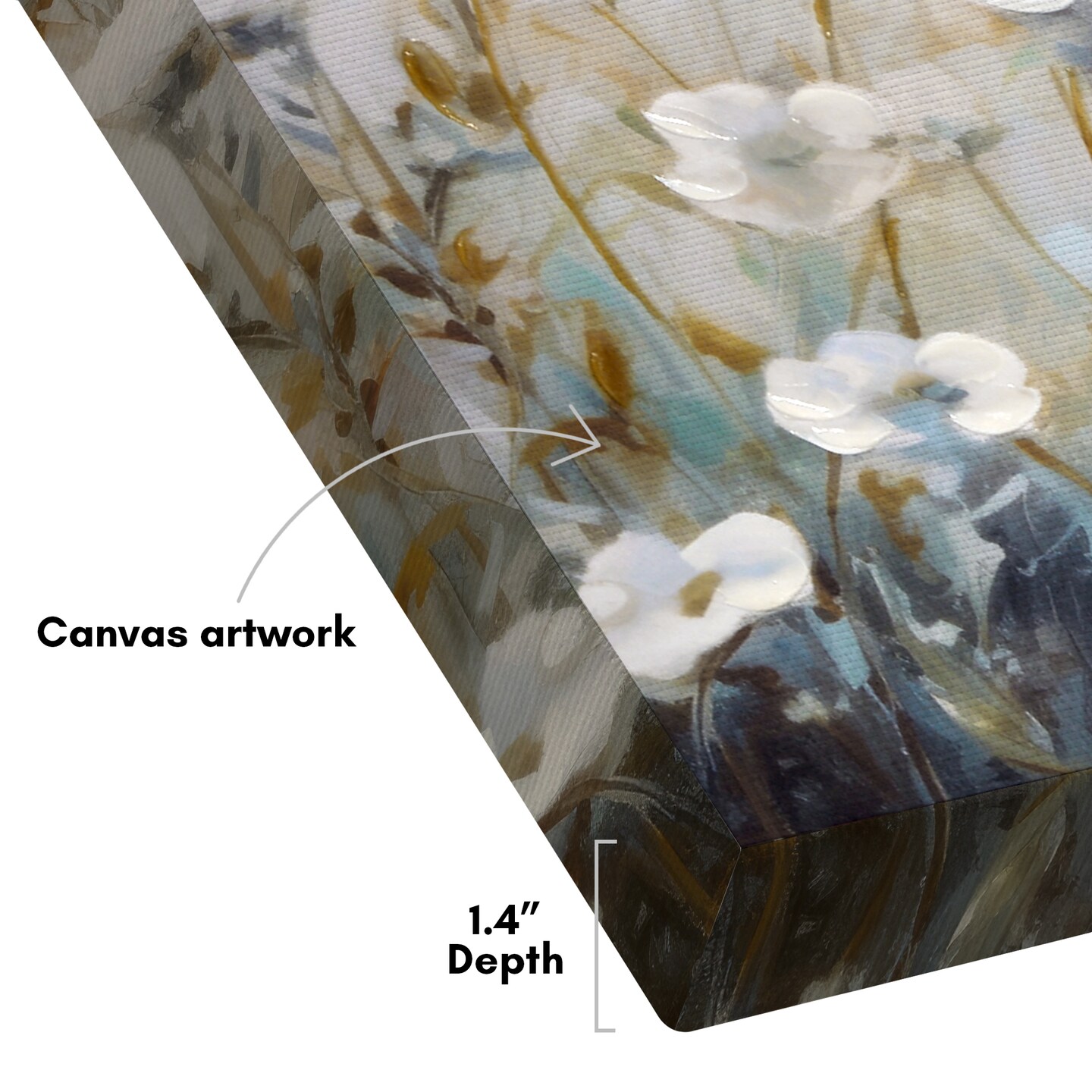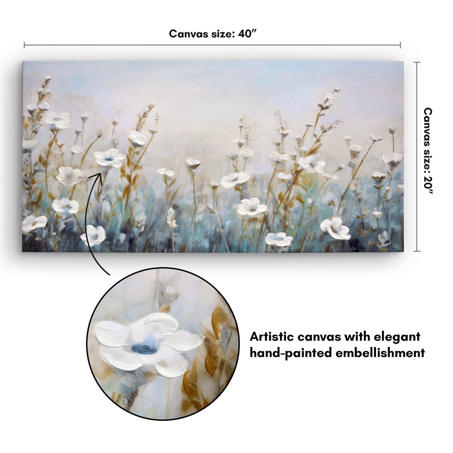 Americanflat Floral Canvas Wall Art Featuring White Wildflowers with Hand-Painted Accents - Gallery Wrap - Green, Beige and Blue - Modern Wall Art