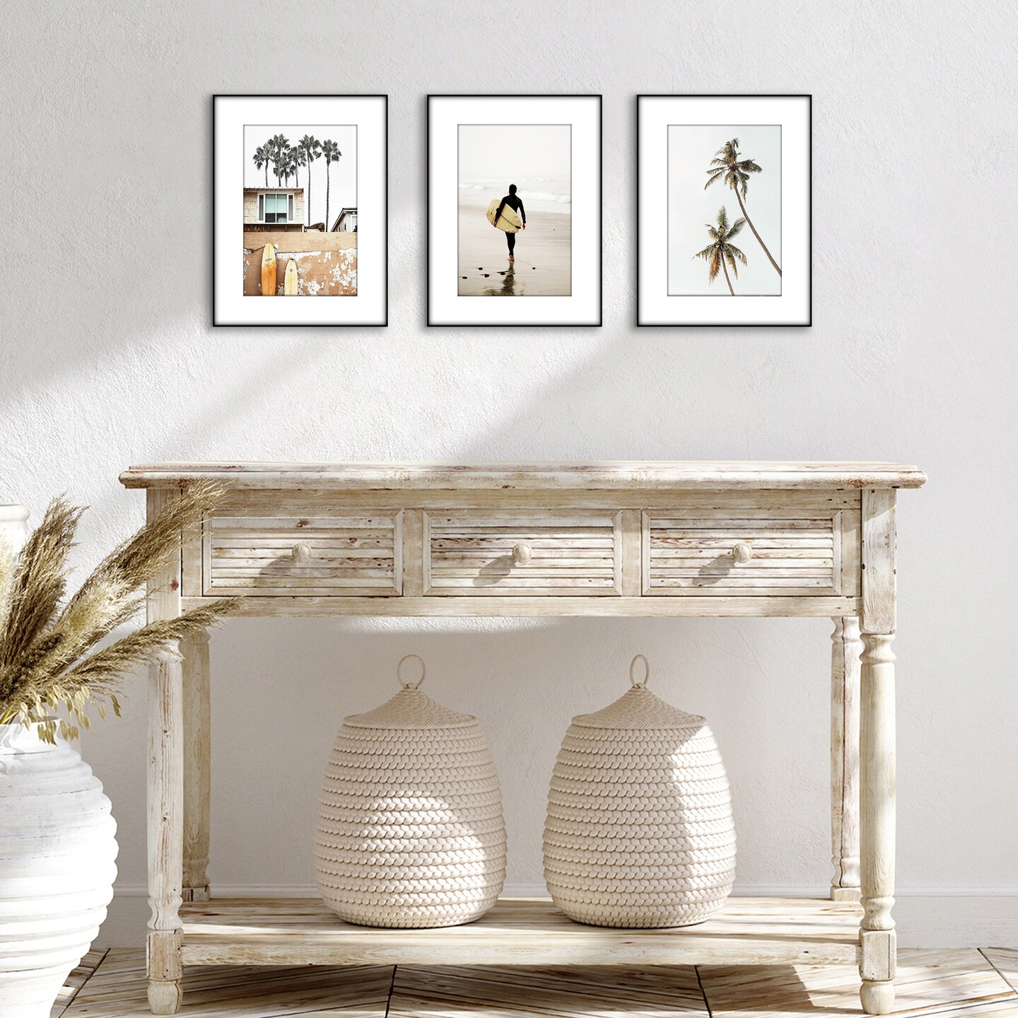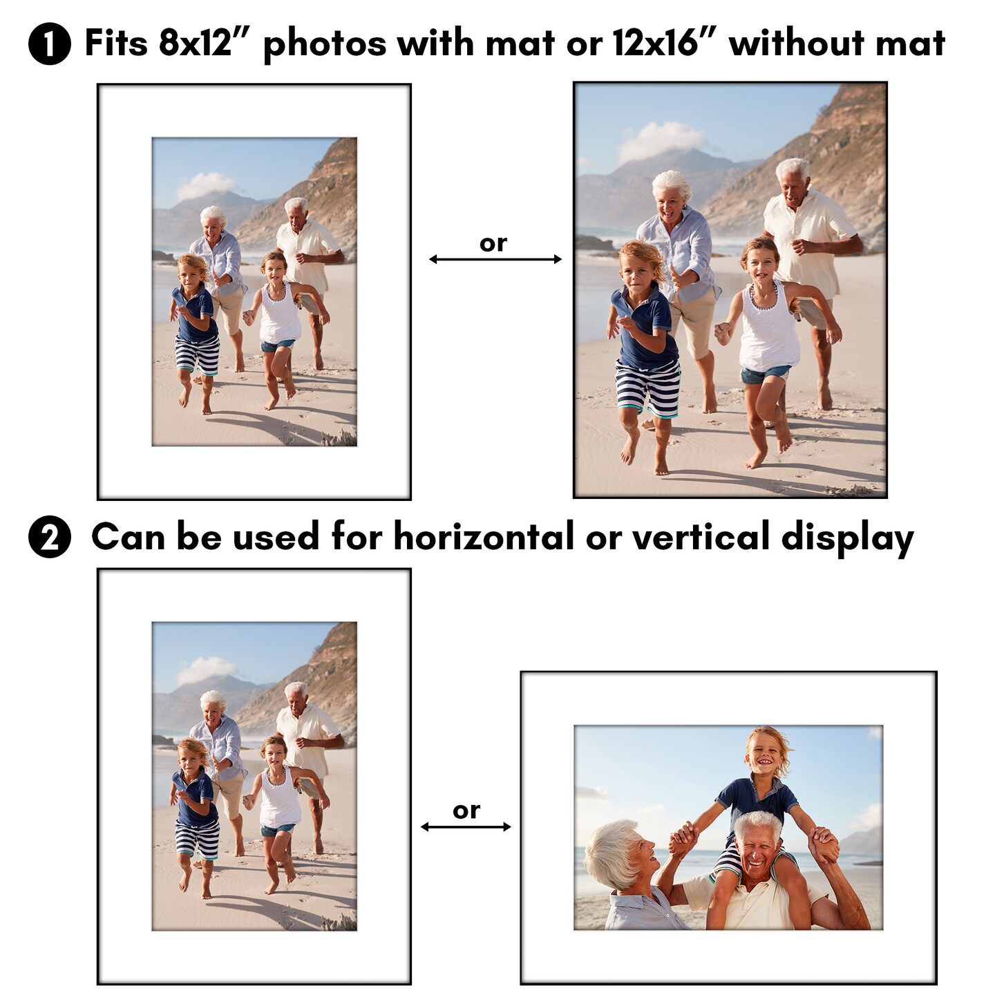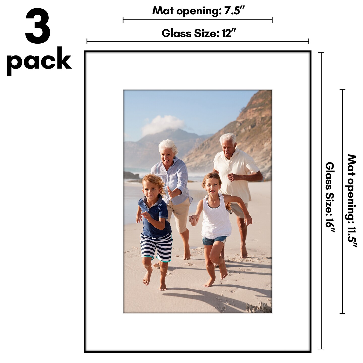 Americanflat Front Loading Picture Frame Set with Mat - Set of 3 - Wall Decor Frames - Shatter Resistant Glass - Hanging Hardware with Snap-Out Easel - Black