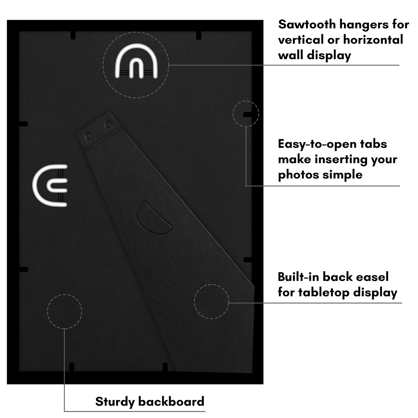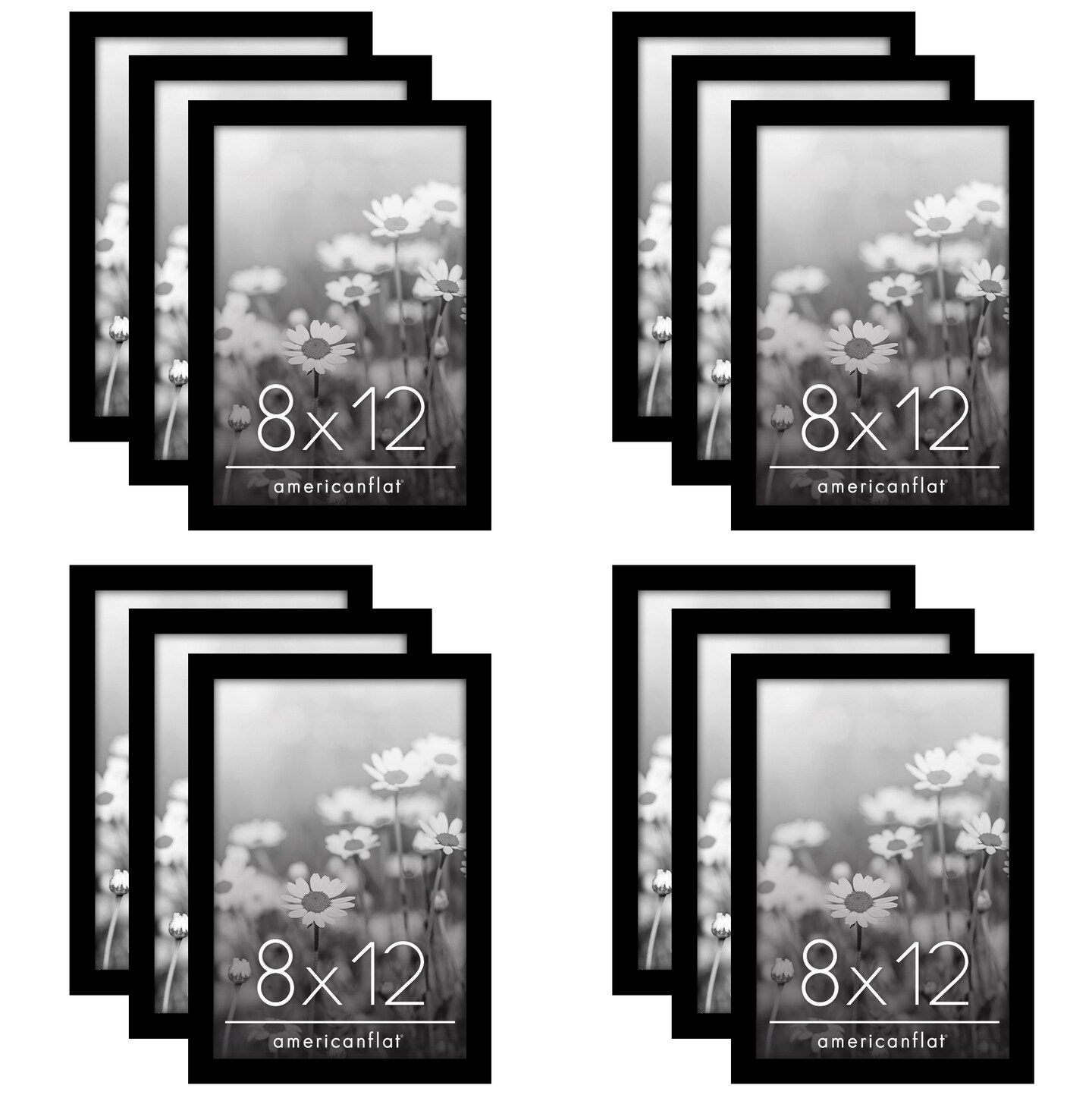 Americanflat Gallery Wall Picture Frames - Set of 12 - Picture Frame Set for Wall Collage - Plexiglass Cover - Hanging Hardware - Includes Easel - Black