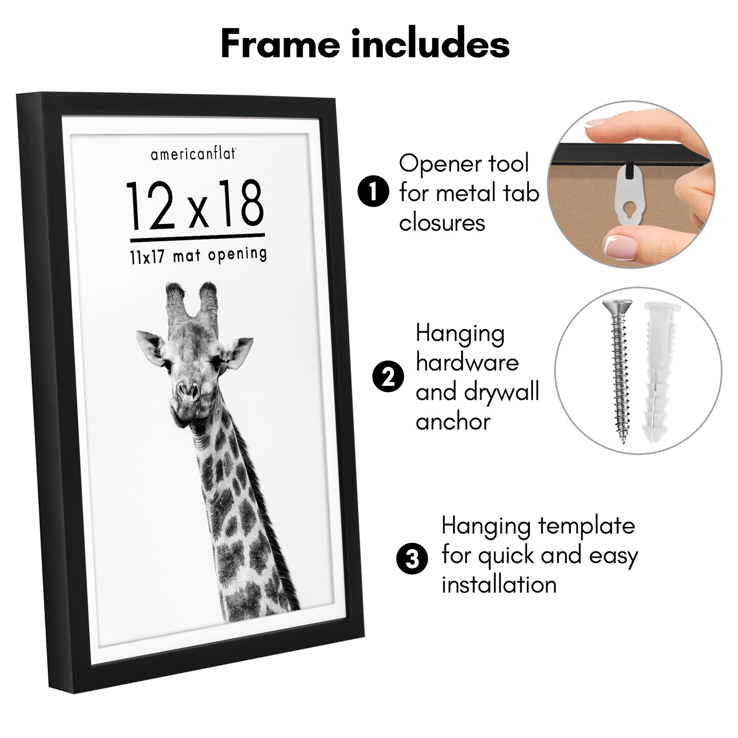 Americanflat Gallery-Style Picture Frame with Mat - Showcase Artwork, Prints, and Photos - Shatter Resistant Glass - Hanging Hardware with Drywall Anchor