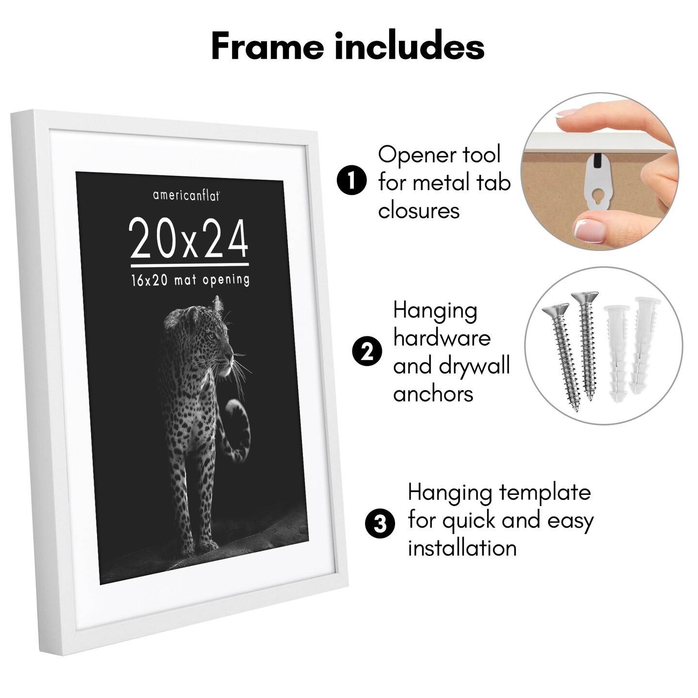 Americanflat Gallery-Style Picture Frame with Mat - Showcase Artwork, Prints, and Photos - Shatter Resistant Glass - Hanging Hardware with Drywall Anchor