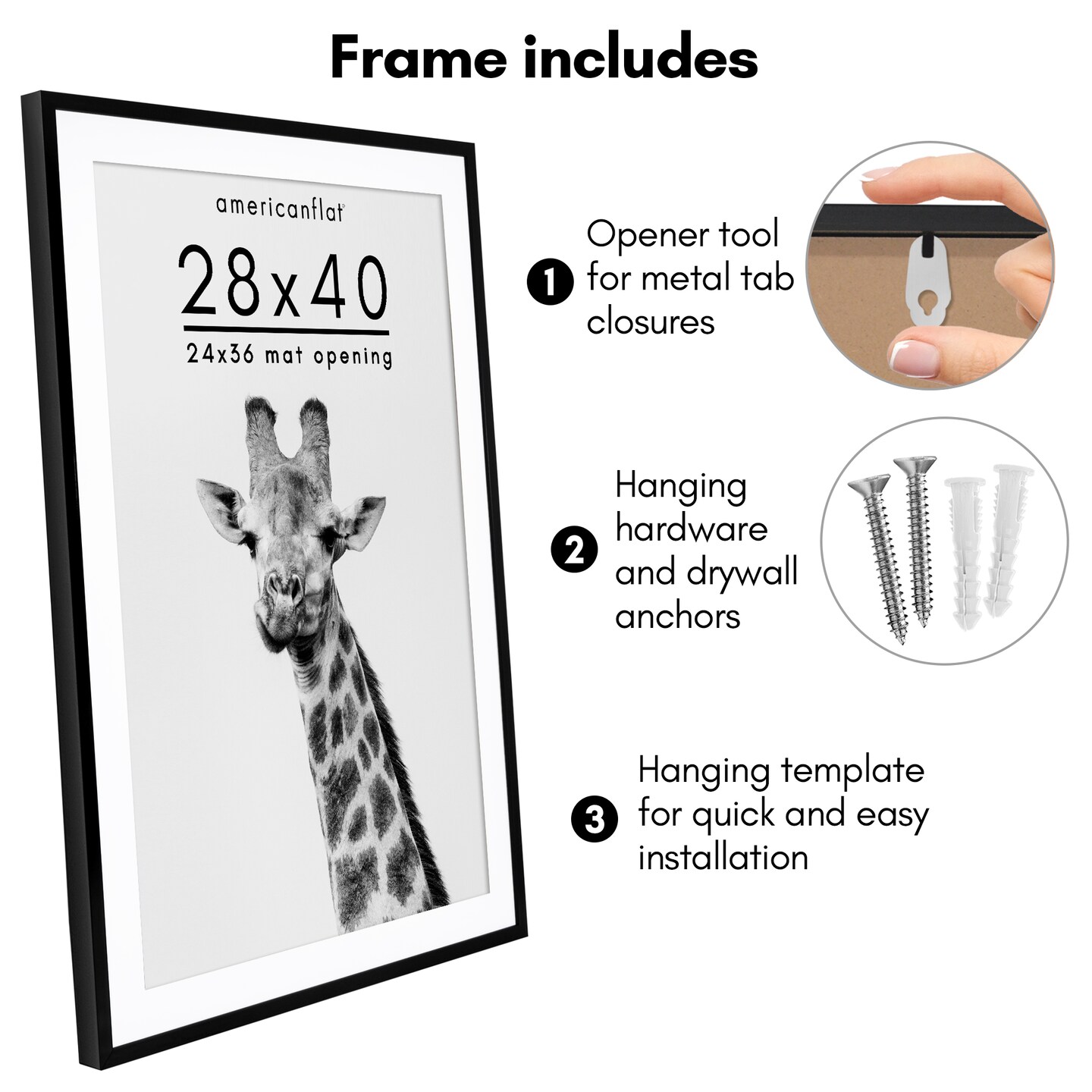 Americanflat Gallery-Style Picture Frame with Mat - Showcase Artwork, Prints, and Photos - Shatter Resistant Glass - Hanging Hardware with Drywall Anchor