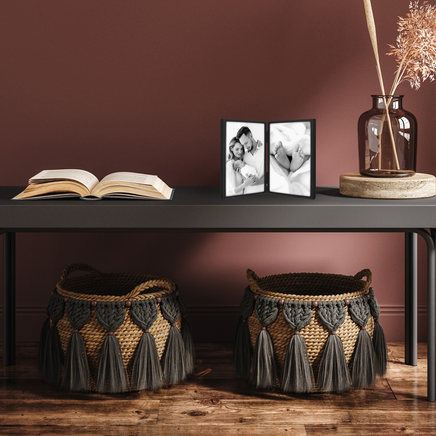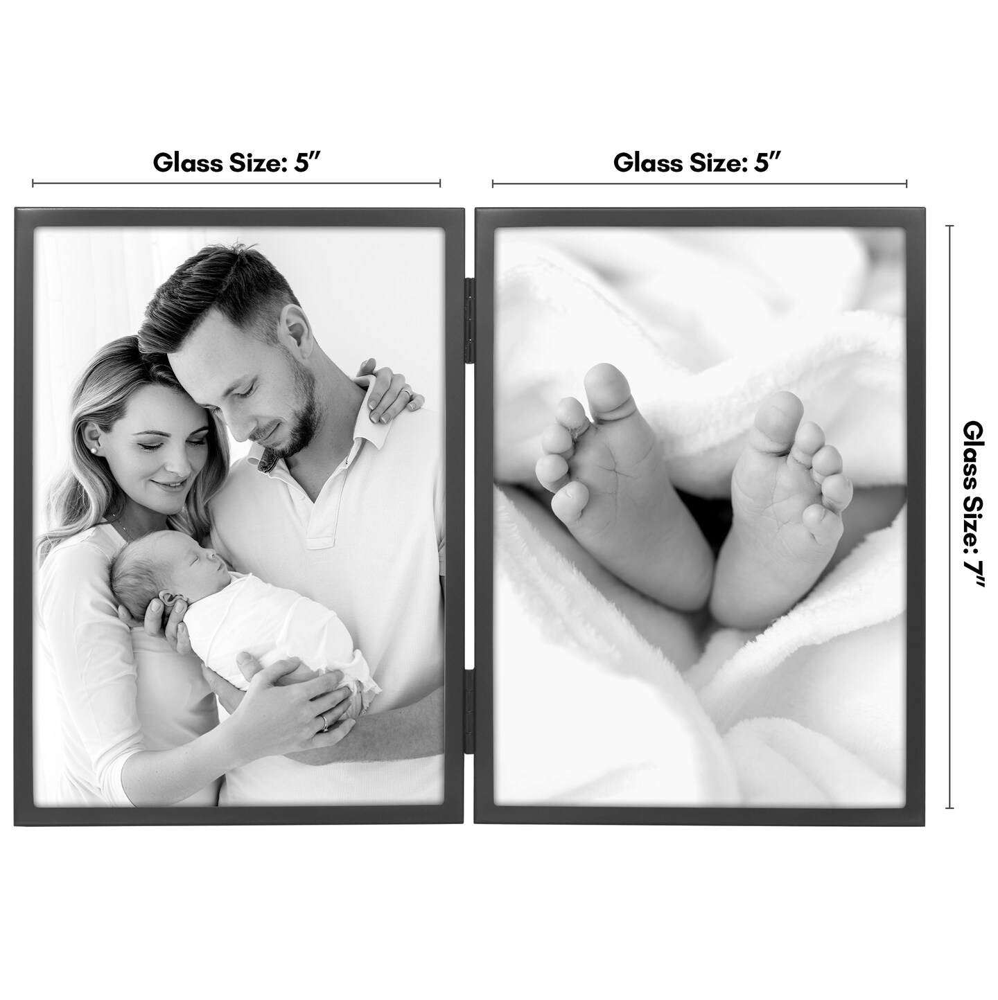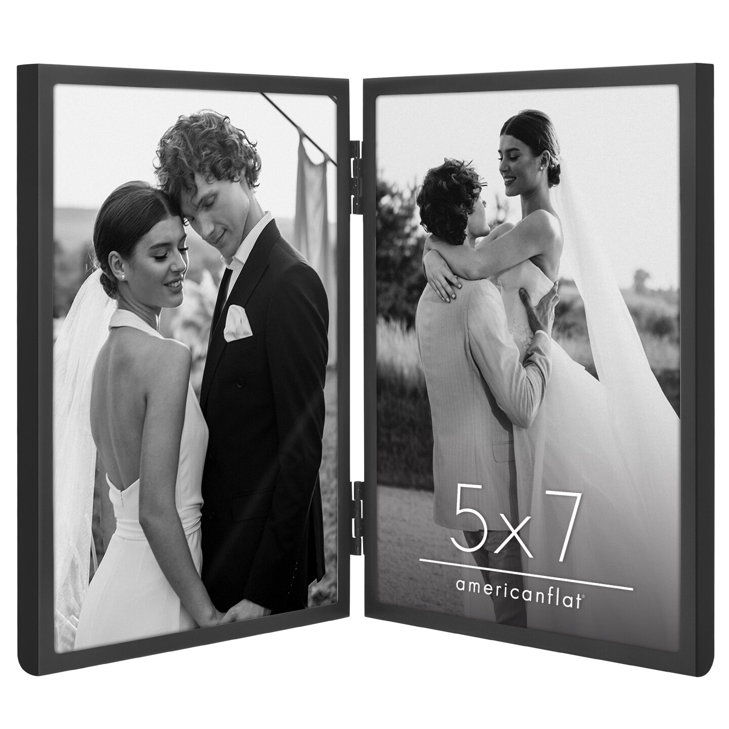 Americanflat Hinged Picture Frame with Shatter-Resistant Glass - Modern Metal Picture Frame Displays Two Photos - Elegant Photo Frames for Tabletop Display