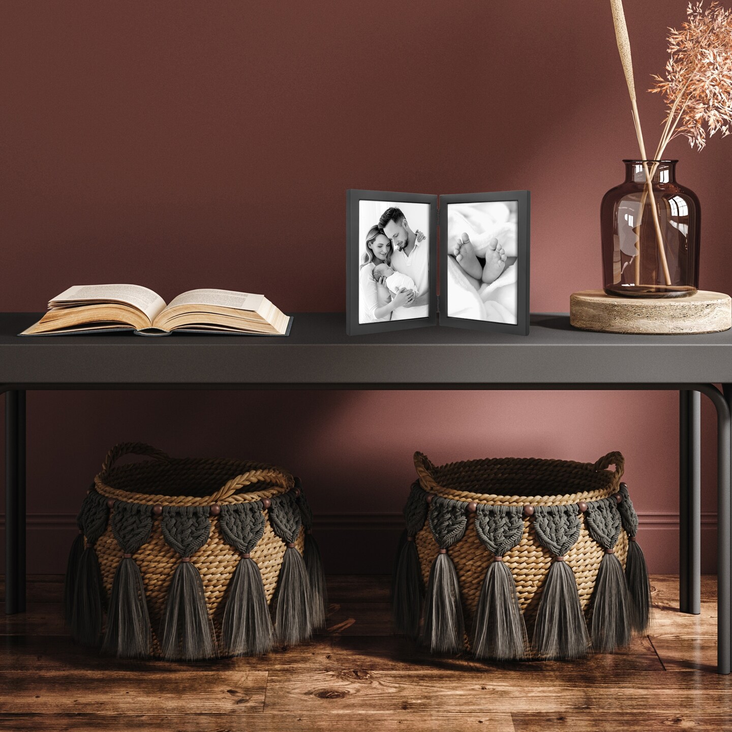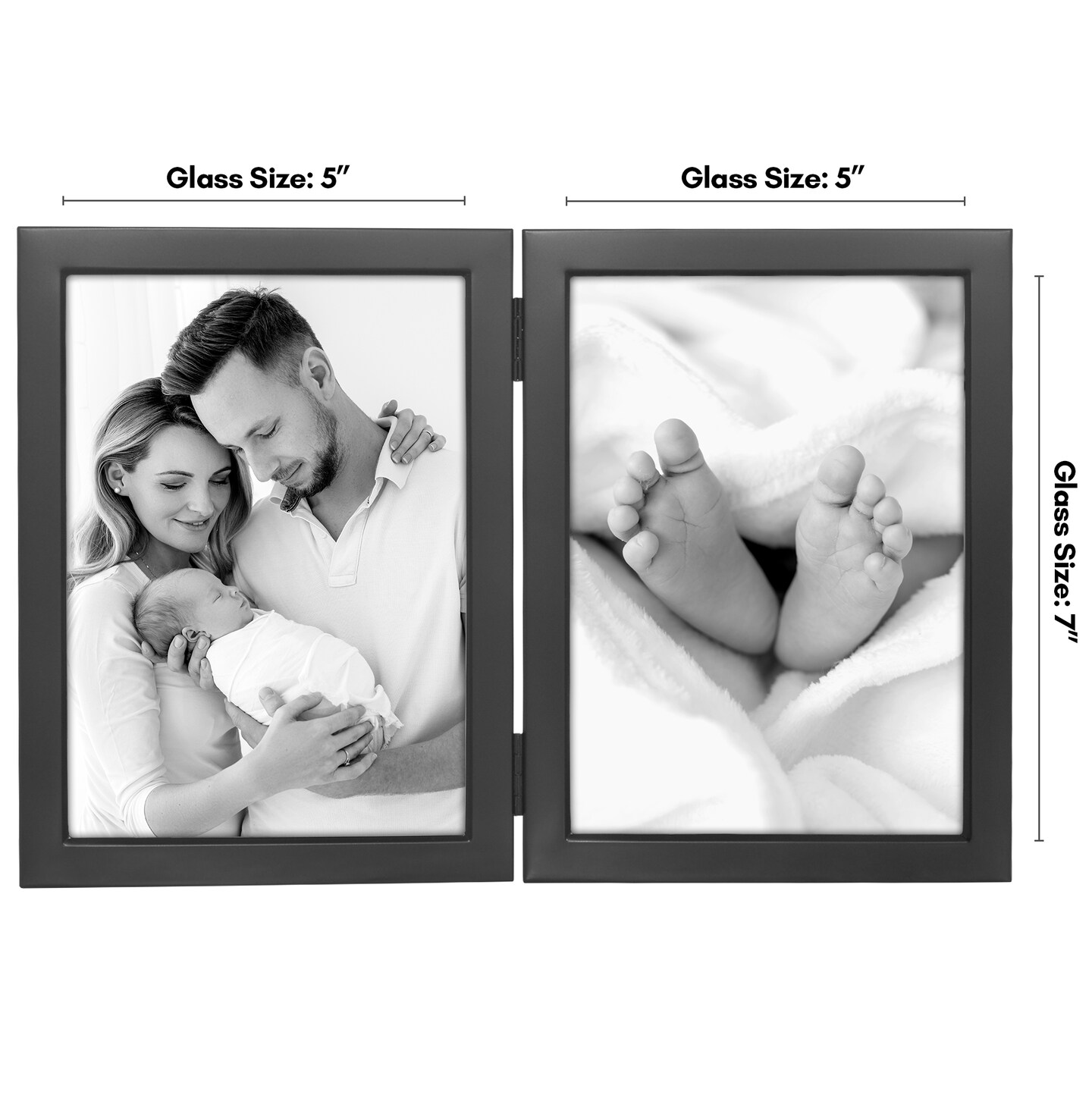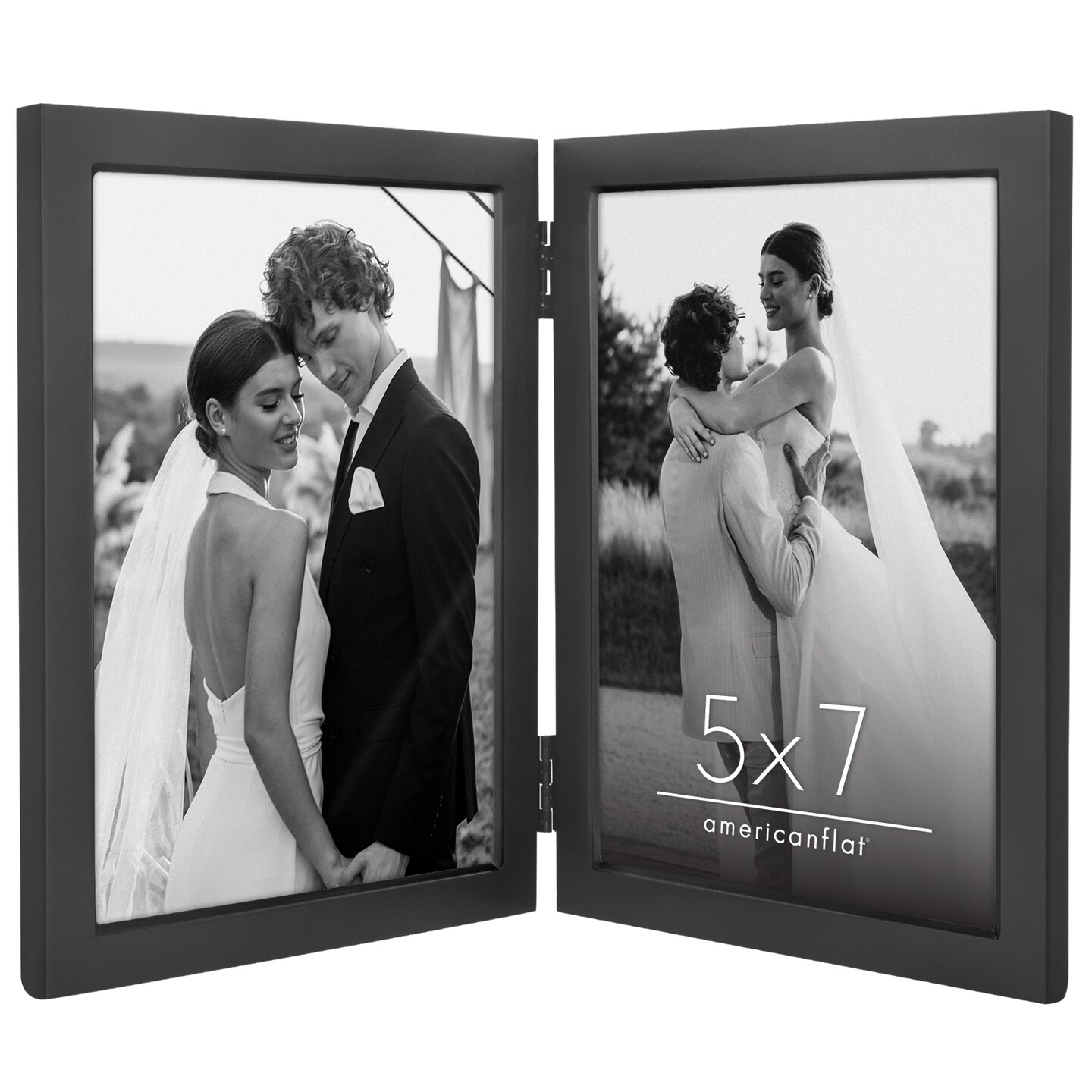 Americanflat Hinged Picture Frame with Wide, Beveled Molding and Shatter-Resistant Glass - Modern Metal Picture Frame Displays Two Photos - Elegant Photo Frames for Tabletop Display