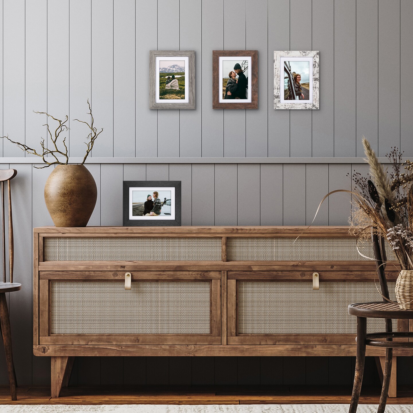 Americanflat Photo Frame Set with Mat - Set of 4 - Farmhouse Decor Picture Frames - Shatter Resistant Glass - Hanging Hardware - Includes Easel