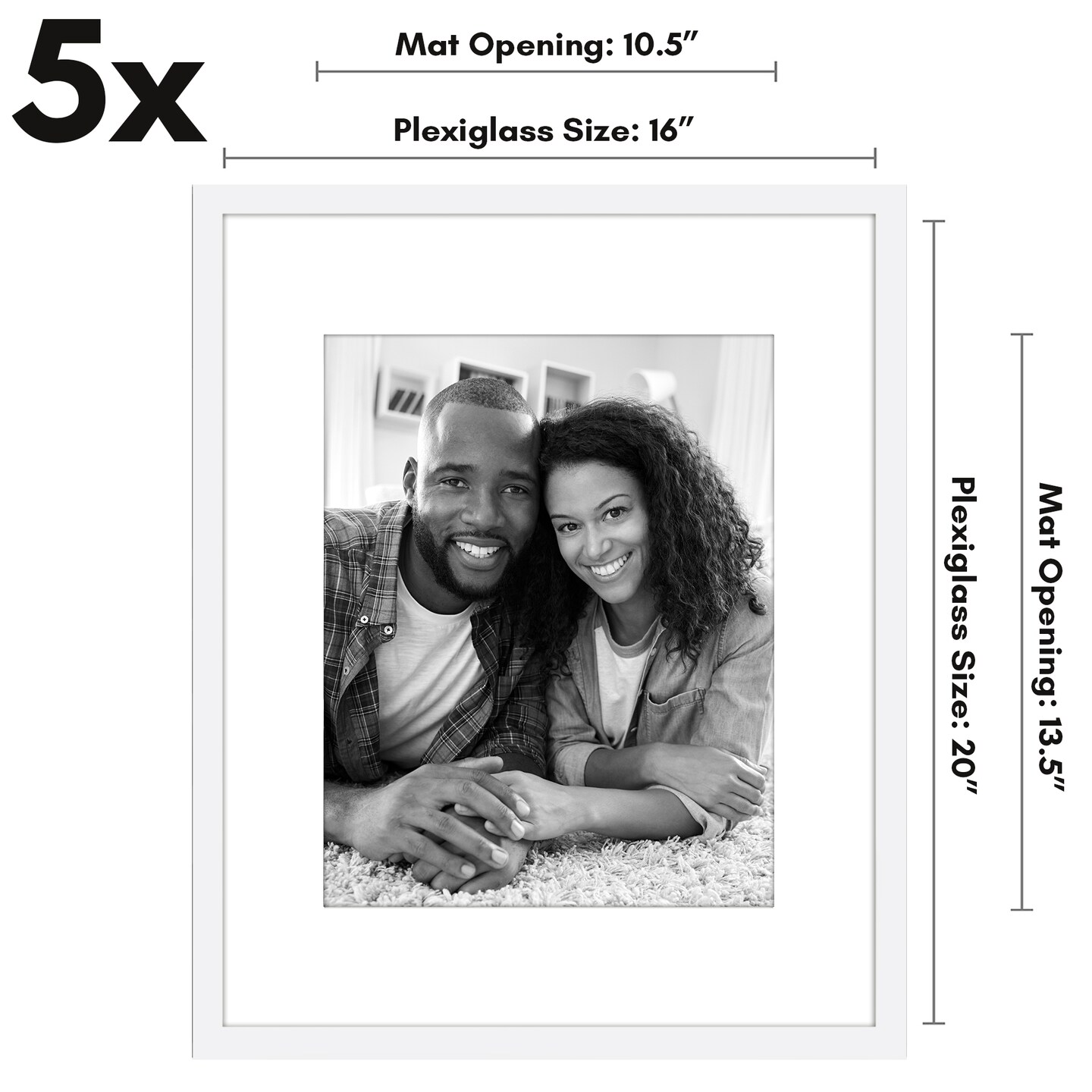 Americanflat Picture Frame Set with Mat - Set of 5 - Photo Frame Set of Five for Wall Display - Plexiglass Cover - Hanging Hardware