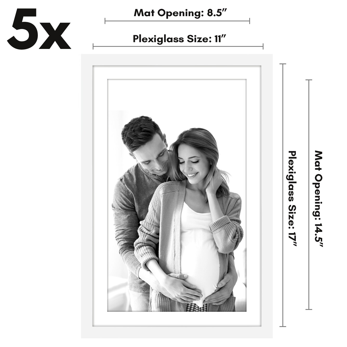 Americanflat Picture Frame Set with Mat - Set of 5 - Photo Frame Set of Five for Wall Display - Plexiglass Cover - Hanging Hardware