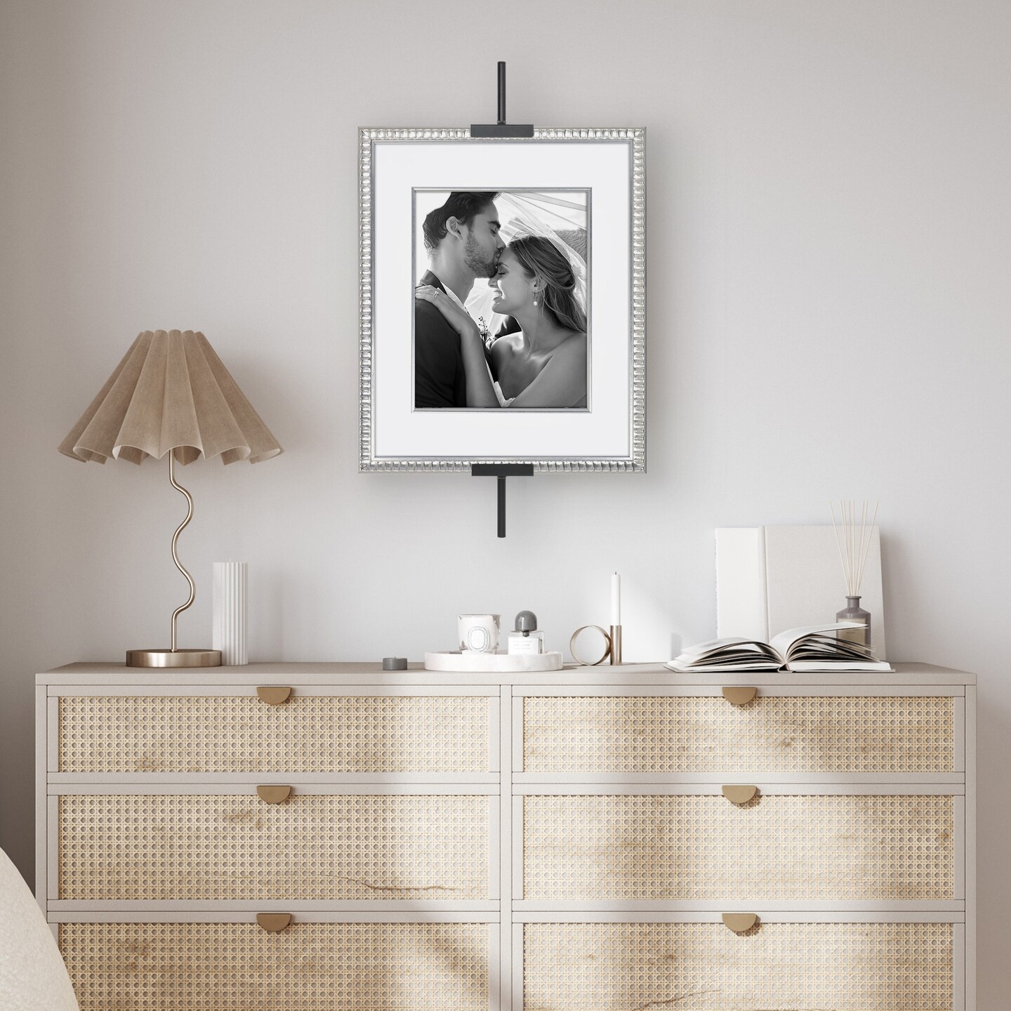 Americanflat Picture Frame Stand - Wall Mounted Frame Stand - Artwork and Photo Easel with Adaptive Clamps for Different Frame Profiles - Black