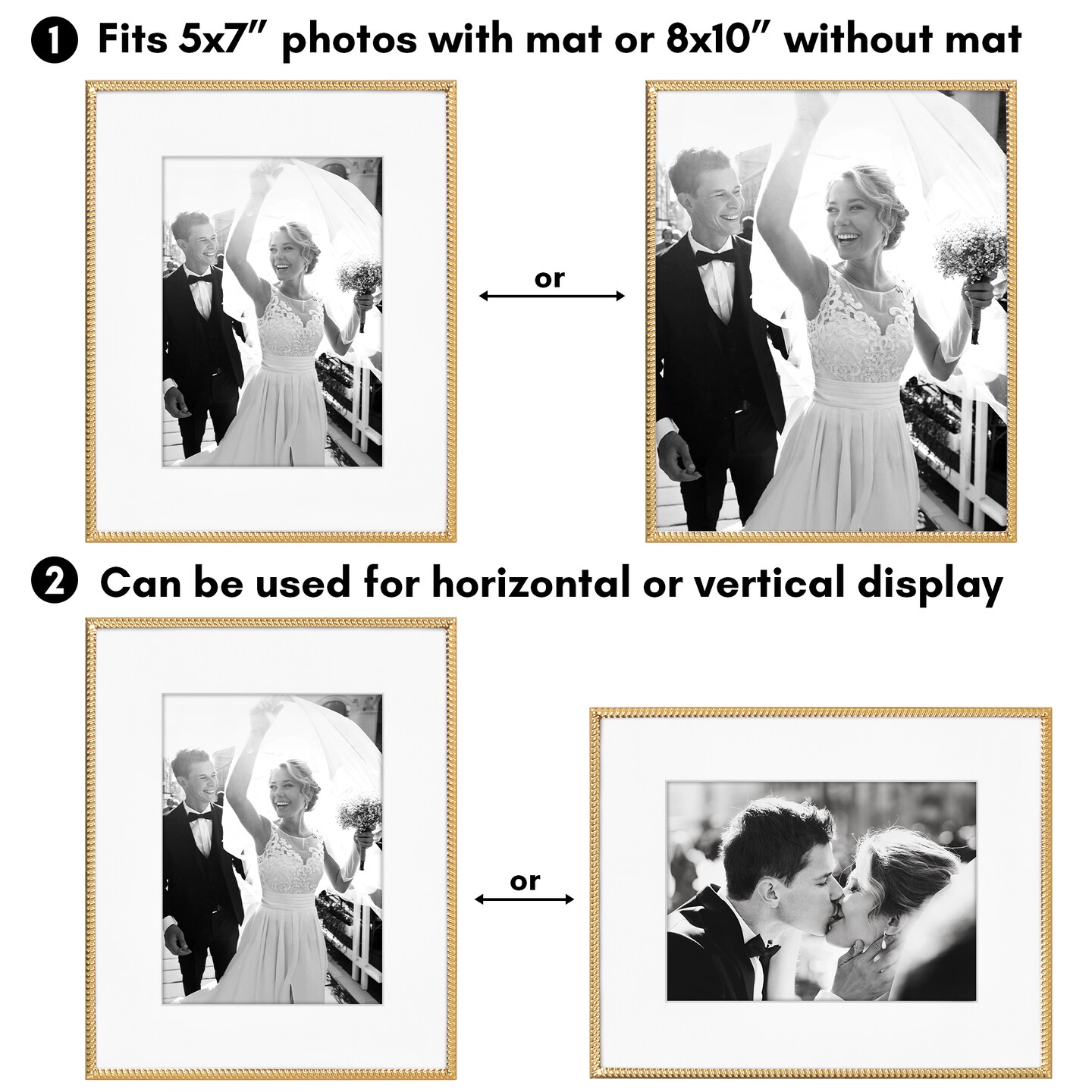 Americanflat Picture Frame with Mat & Rope-Style Textured Detailing and Shatter-Resistant Glass - Use With or Without the included Mat - Elegant Bamboo Frames for Tabletop or Wall