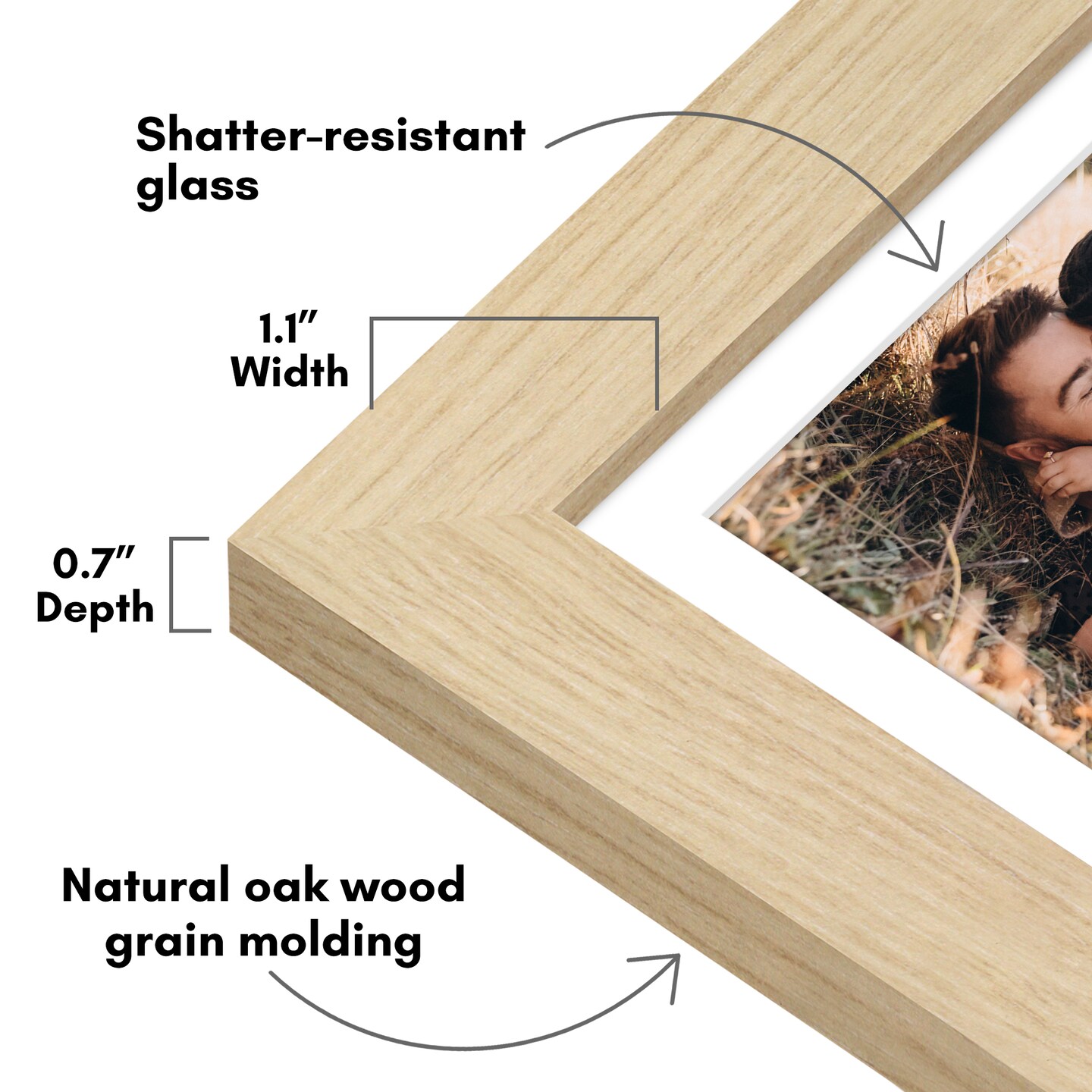 Americanflat Picture Frame with Wide Molding with Mat - Modern Wide Picture Frame - Plexiglass Cover - Hanging Hardware - Includes Easel
