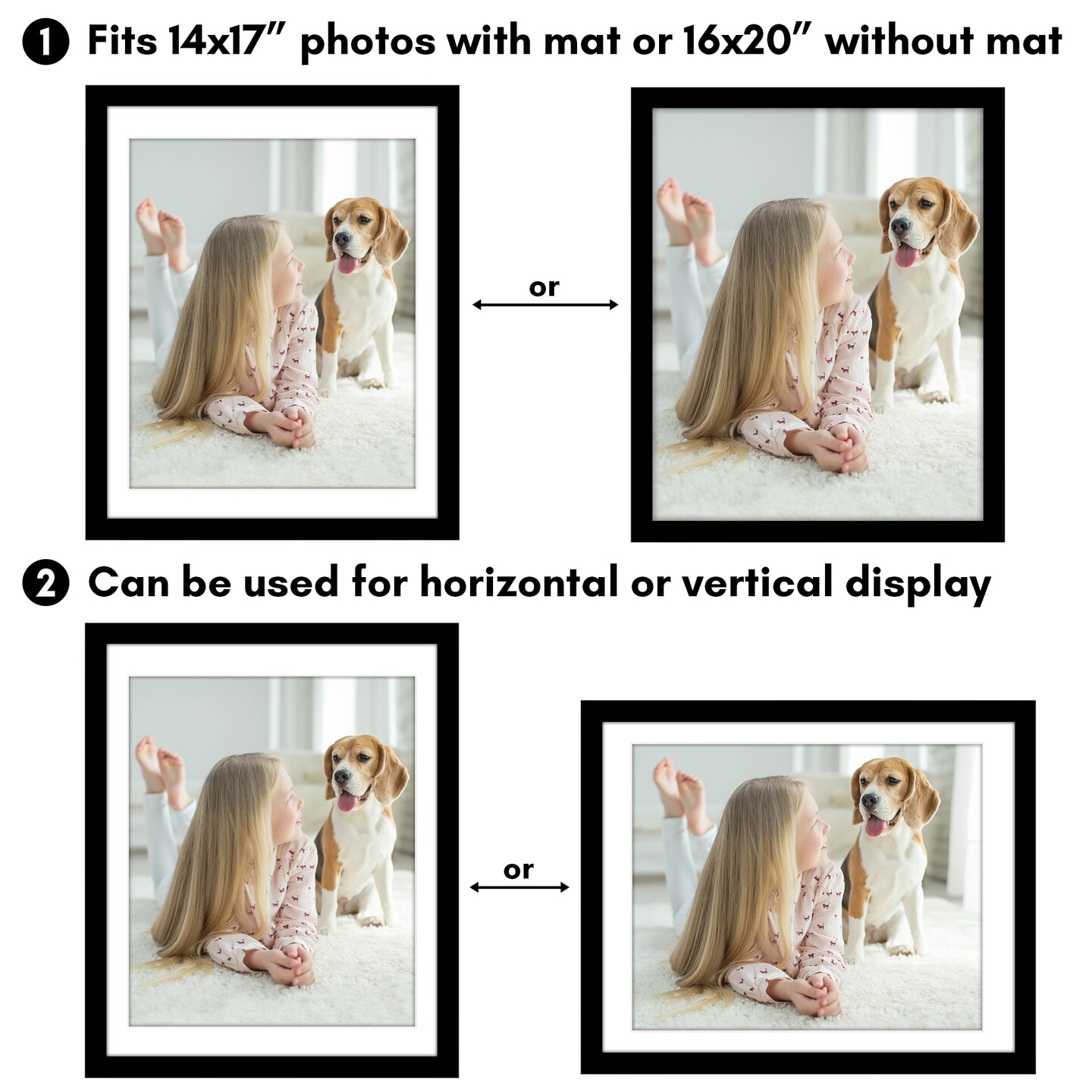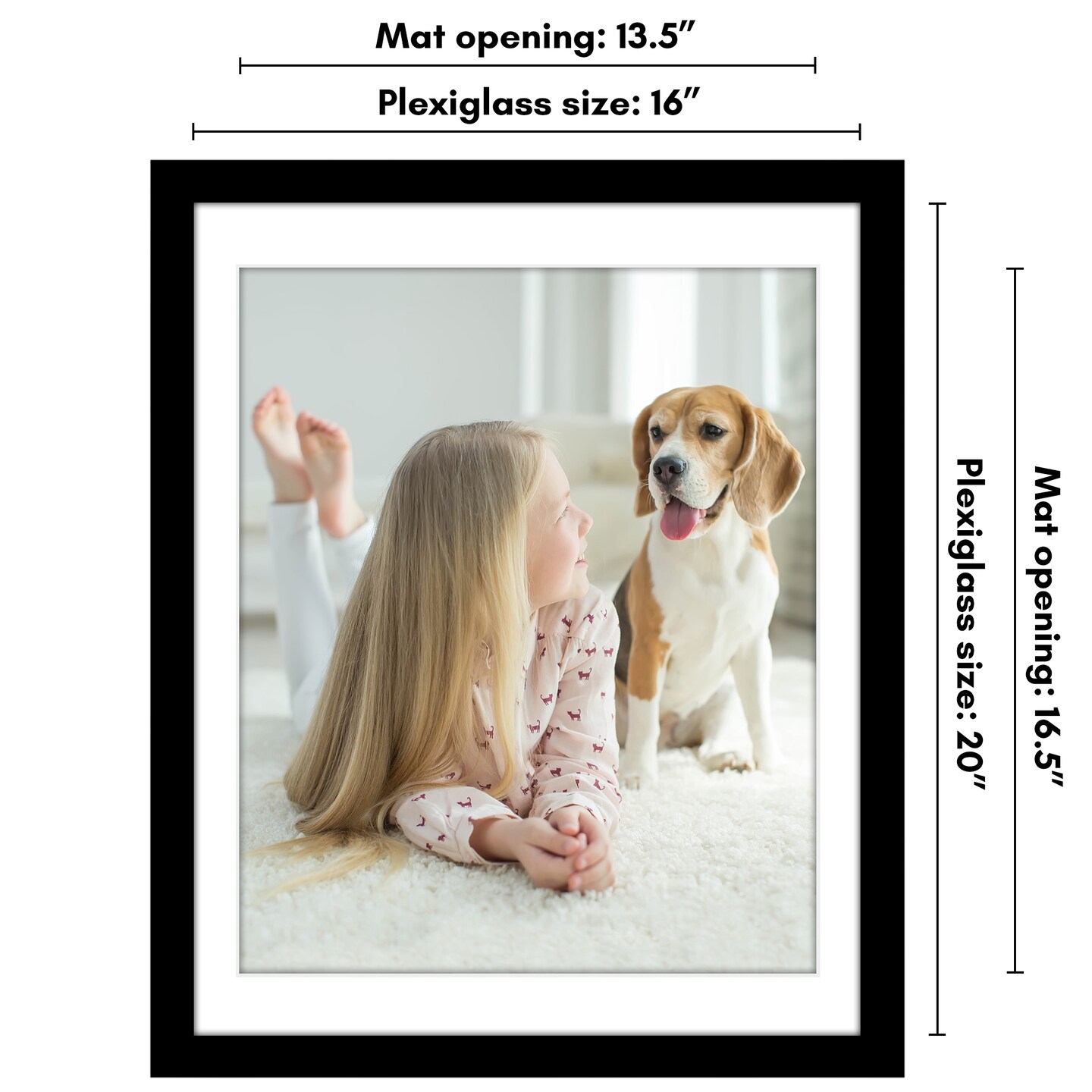Americanflat Poster Frame with Mat - Large Picture Frame - Polished Plexiglass Cover - Hanging Hardware for Horizontal and Vertical Display - Black