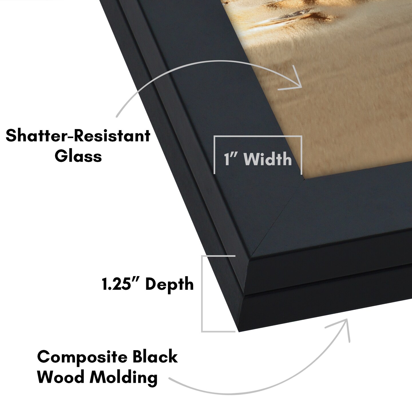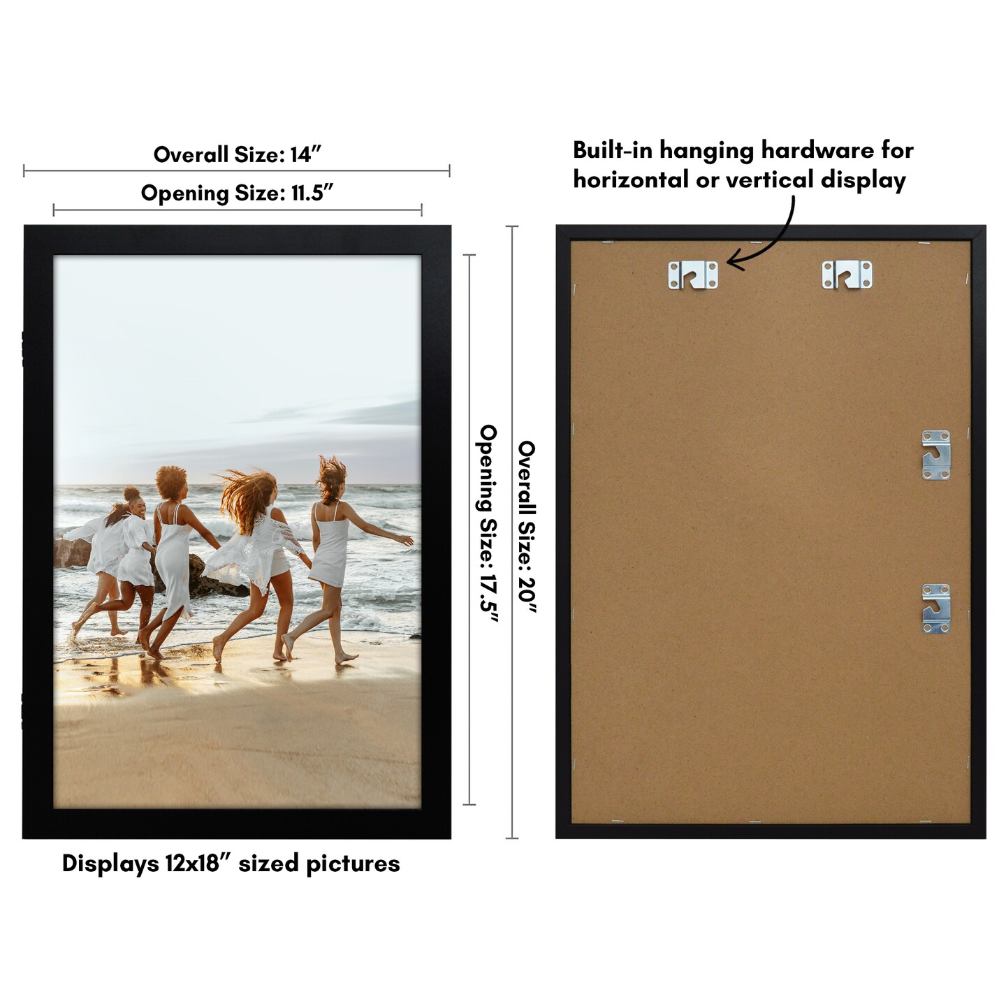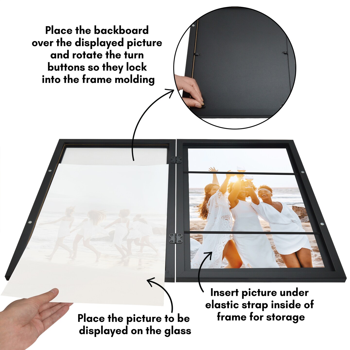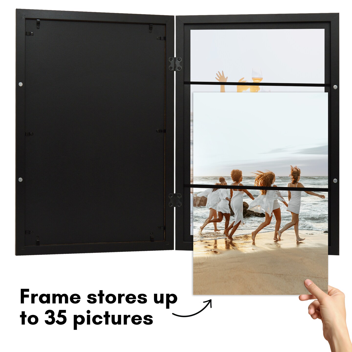 Americanflat Quick-Change Photo Storage Display Frame - Store up to 35 Pictures at Once with Elastic Strap Storage - Shatter Resistant Glass - Hanging Hardware - Includes Easel - Black