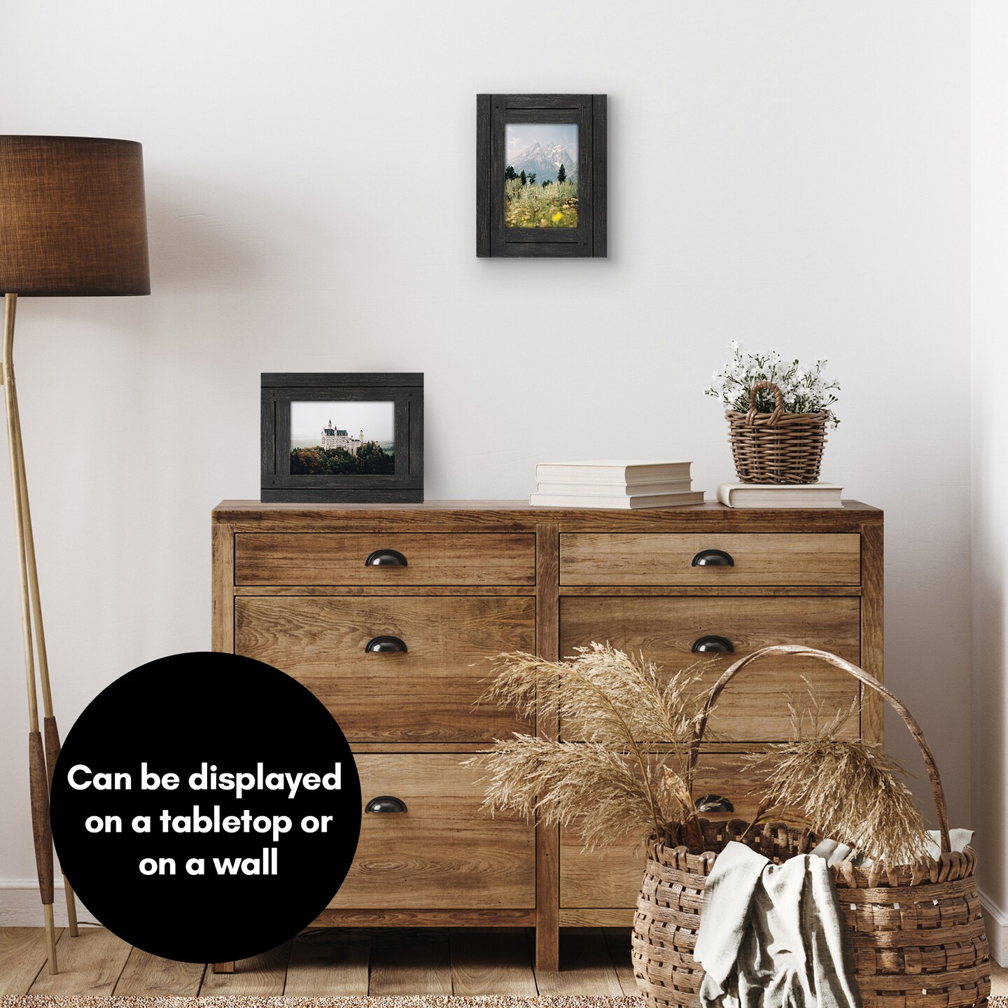 Americanflat Rustic Picture Frame - Modern Photo Frame for Unique Farmhouse Look - Polished Glass Cover - Hanging Hardware with Horizontal and Vertical Display - Includes Easel