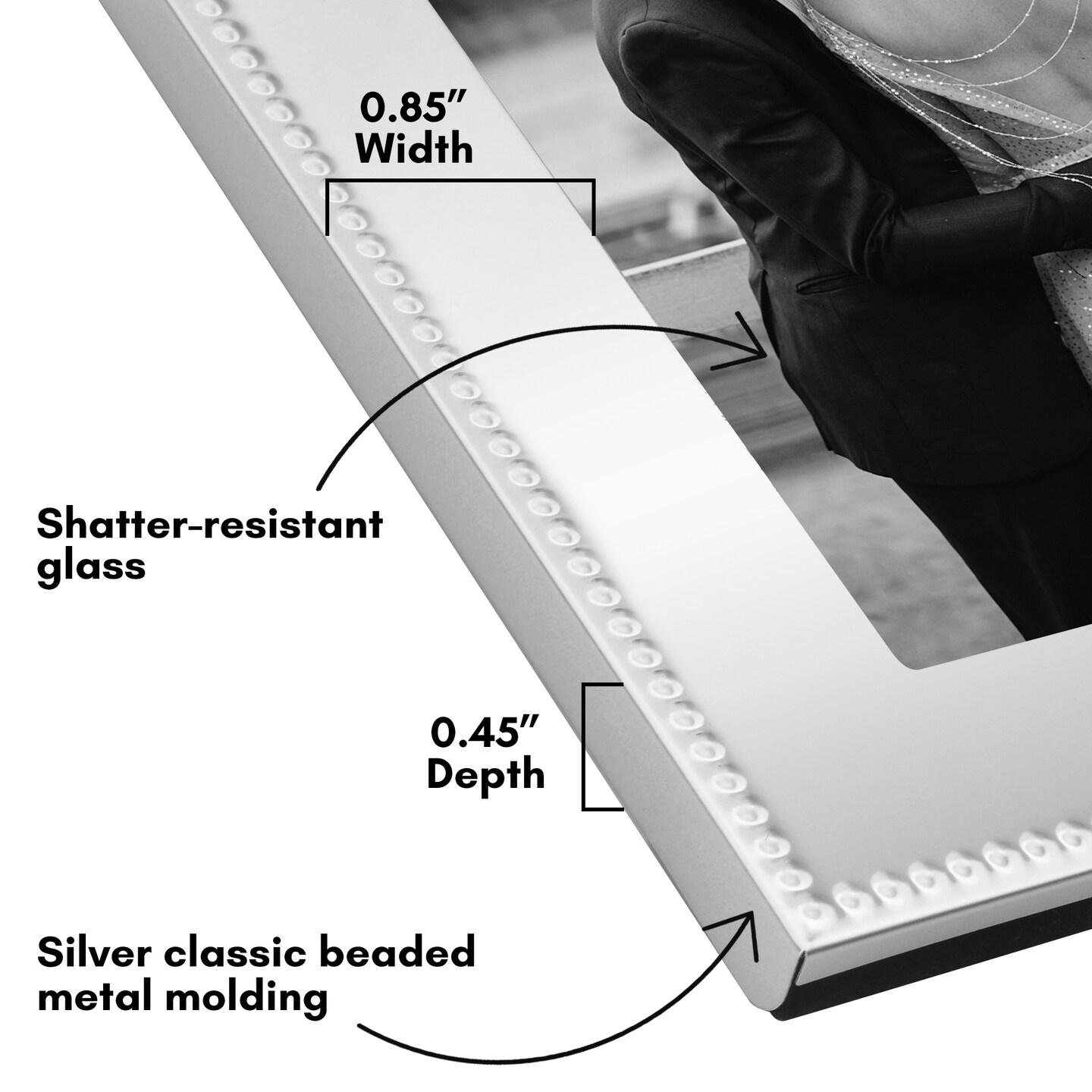 Americanflat Silver Metal Picture Frame with Beaded-Style Detailing - Beaded Picture Frame with Shatter-Resistant Glass - Elegant Gallery Style Frames for Tabletop or Wall Display