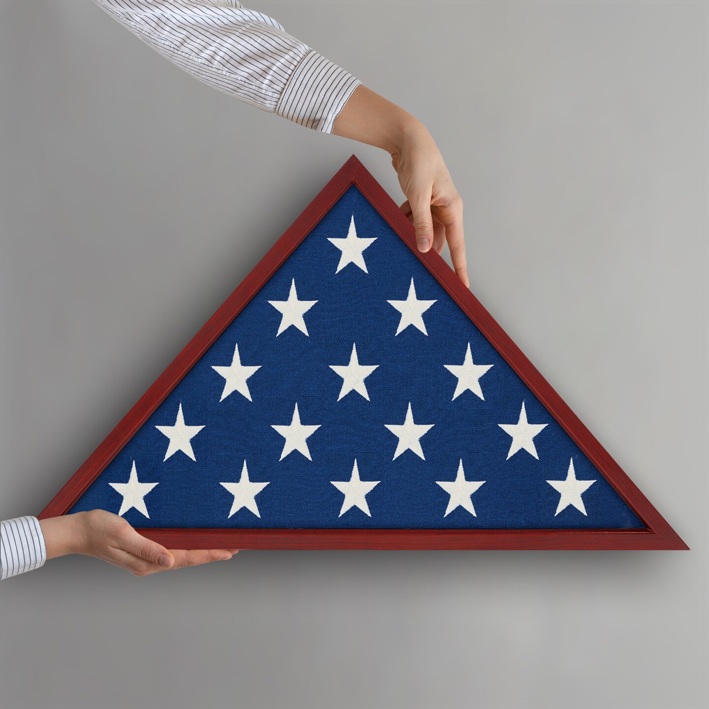 Americanflat Small Flag Display Case for Burial Flag - Fits Folded Flag - Elegant Military Flag Display Case - Plexiglass Cover - Triangle Hanging Hardware - Brown