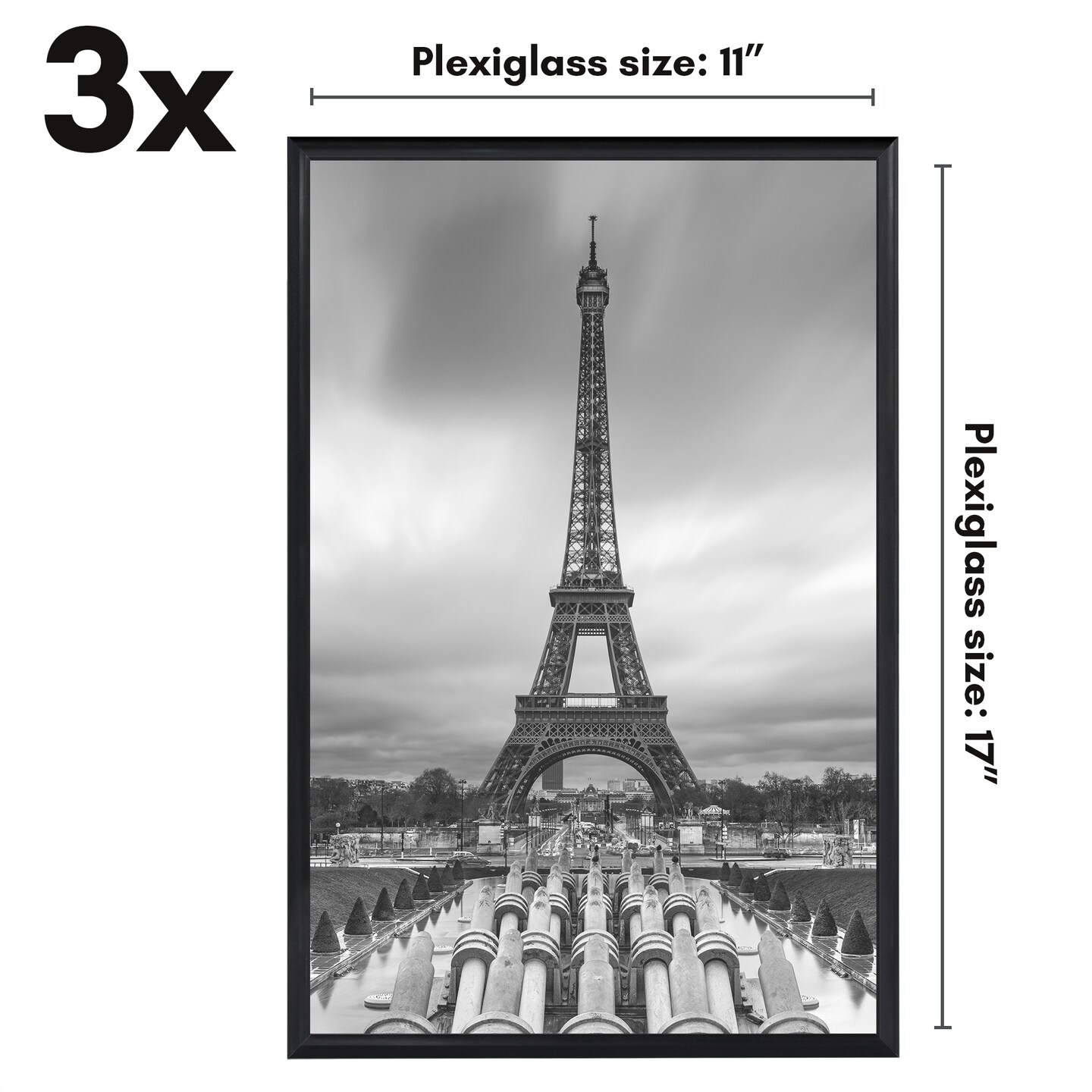 Americanflat Snap-In Picture Frame in Black - Set of 3 - Poster Frame with Slimline Molding, Plexiglass Cover, and Hanging Hardware - Black