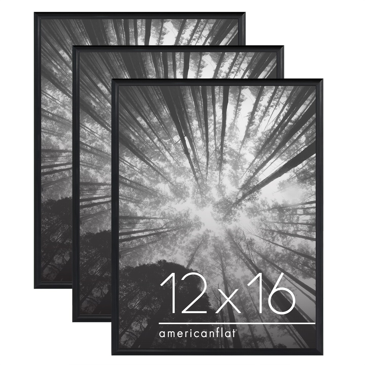 Americanflat Snap-In Picture Frame in Black - Set of 3 - Poster Frame with Slimline Molding, Plexiglass Cover, and Hanging Hardware - Black