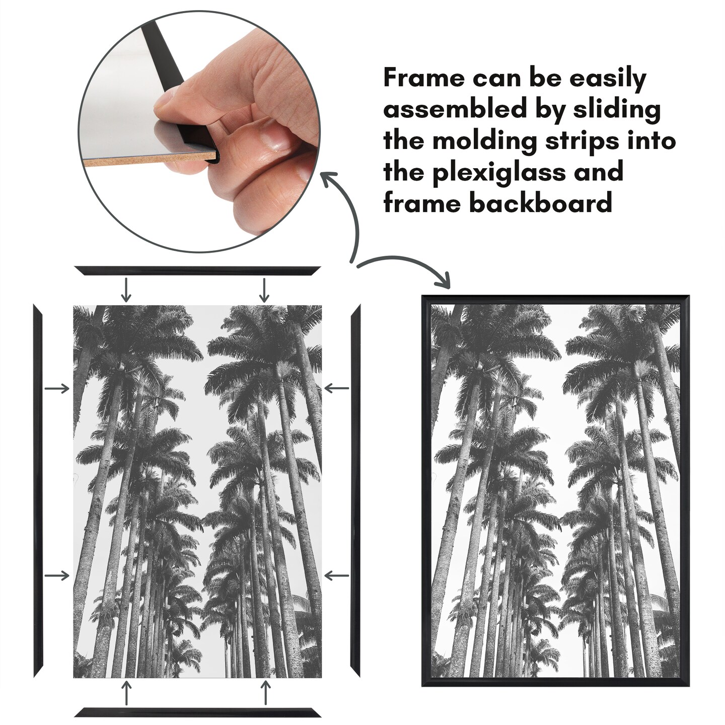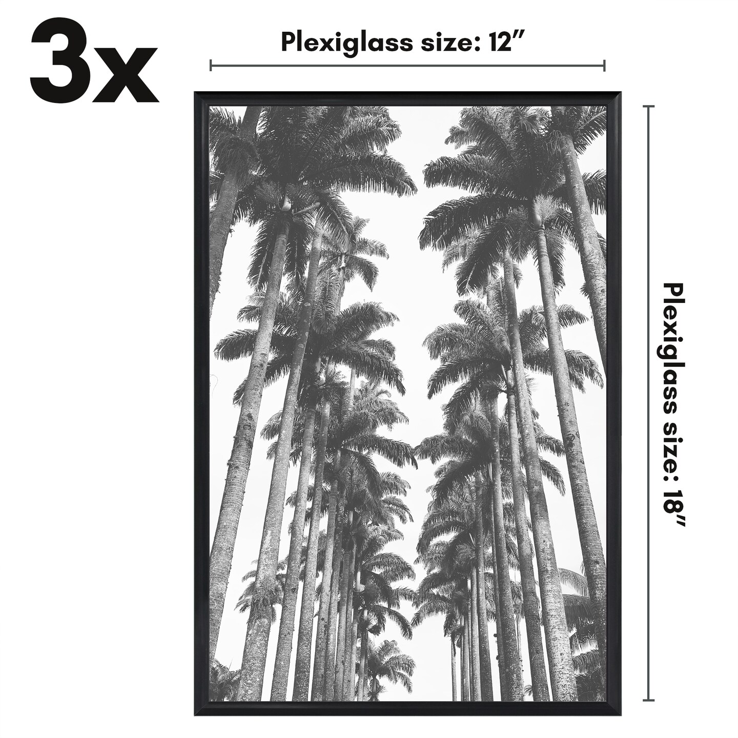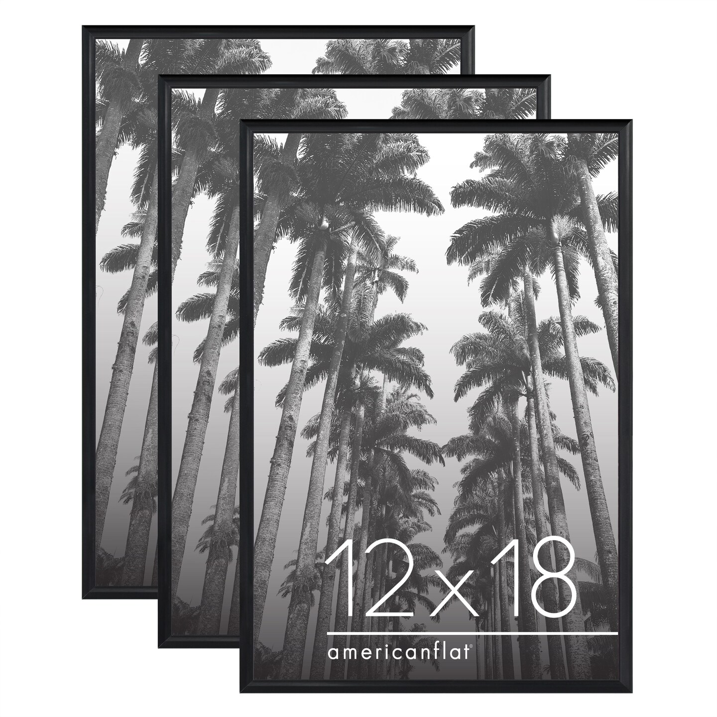 Americanflat Snap-In Picture Frame in Black - Set of 3 - Poster Frame with Slimline Molding, Plexiglass Cover, and Hanging Hardware - Black