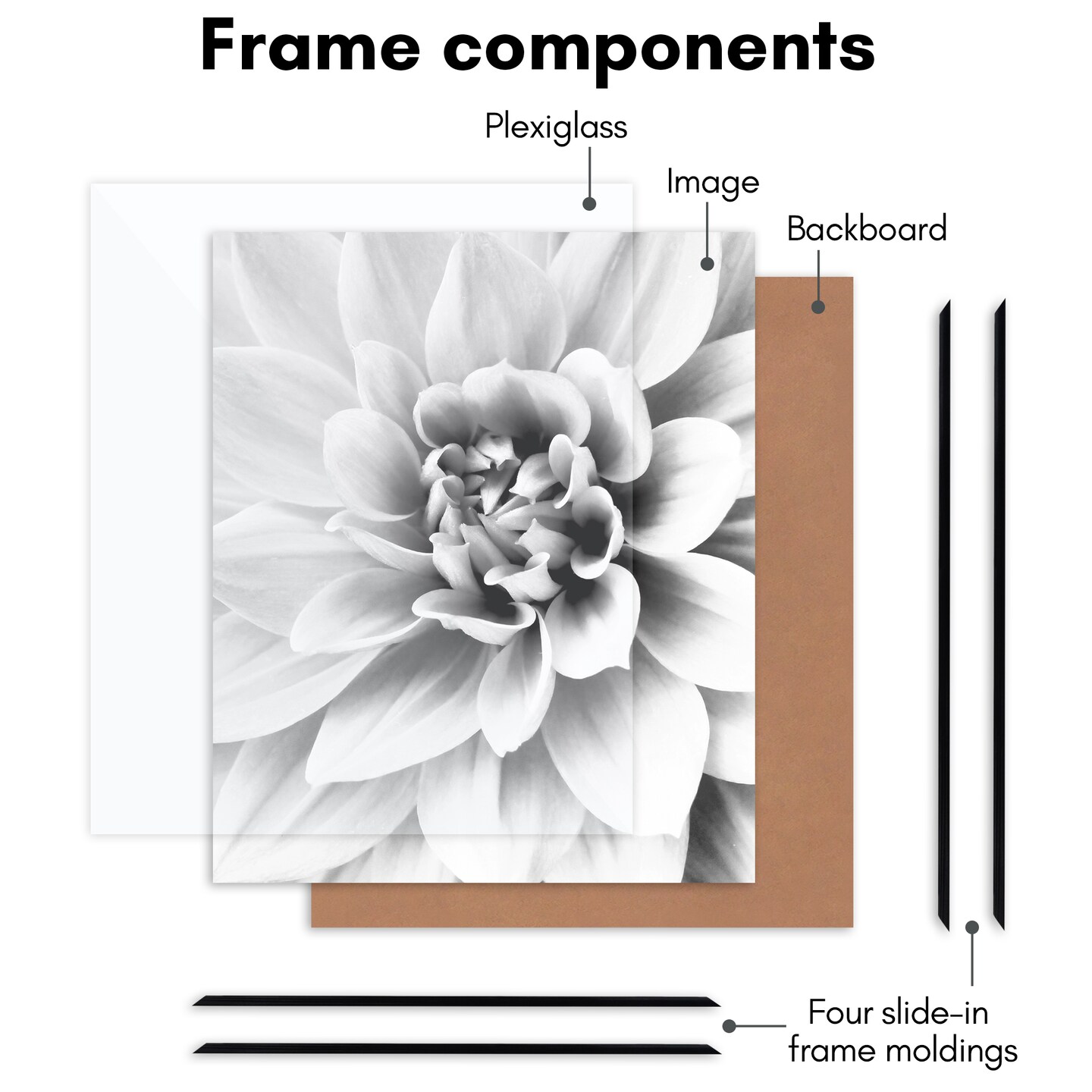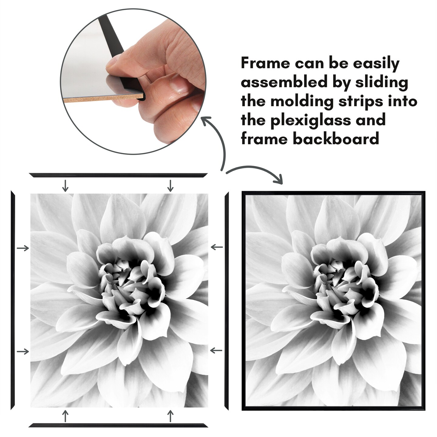 Americanflat Snap-In Picture Frame in Black - Set of 3 - Poster Frame with Slimline Molding, Plexiglass Cover, and Hanging Hardware - Black