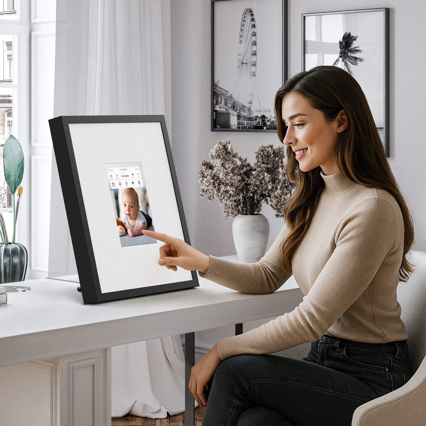 Americanflat Soho Gallery - 15x18 Digital Picture Frame - Wide Mat - 10.1" HD Touchscreen - Expandable Storage & Built-In WiFi