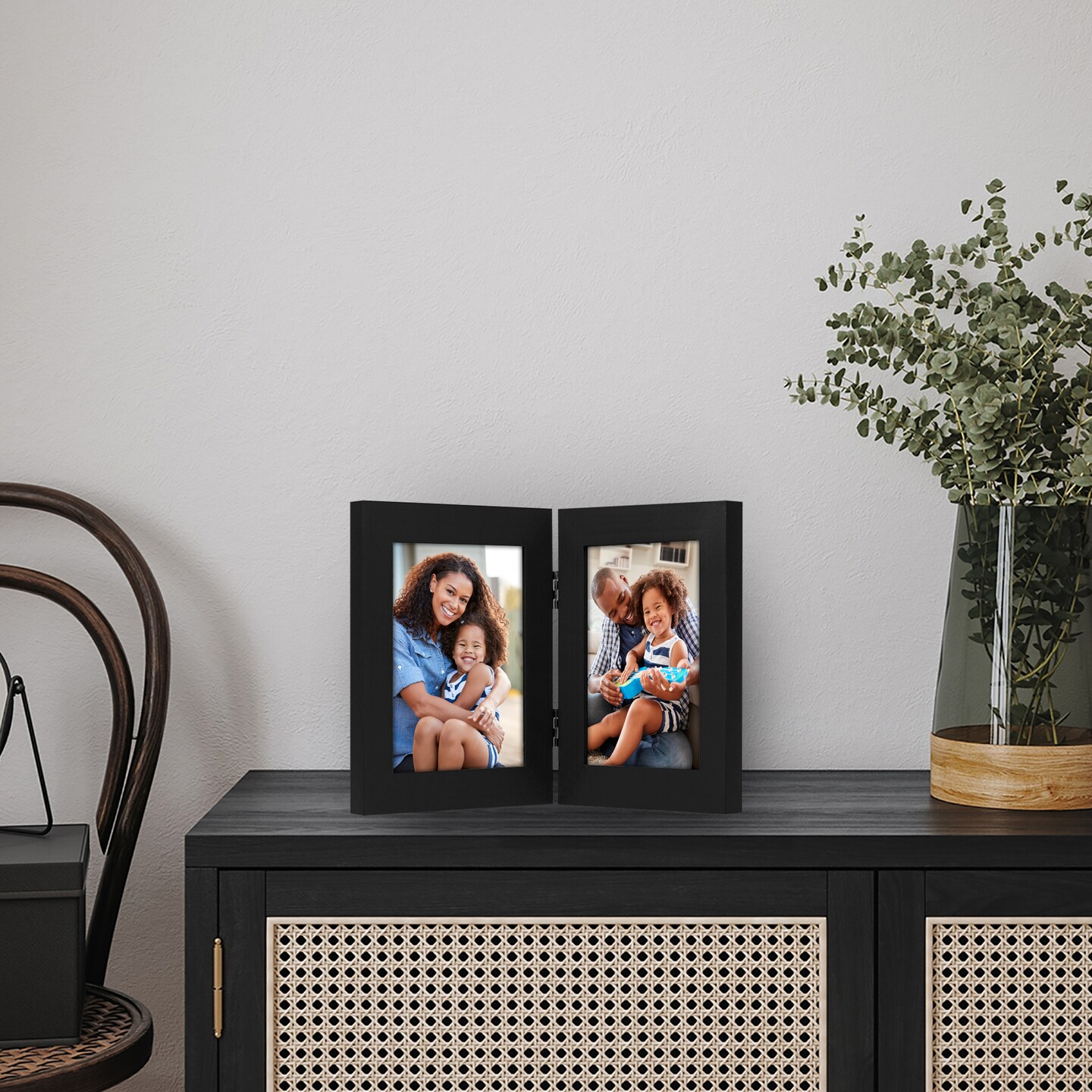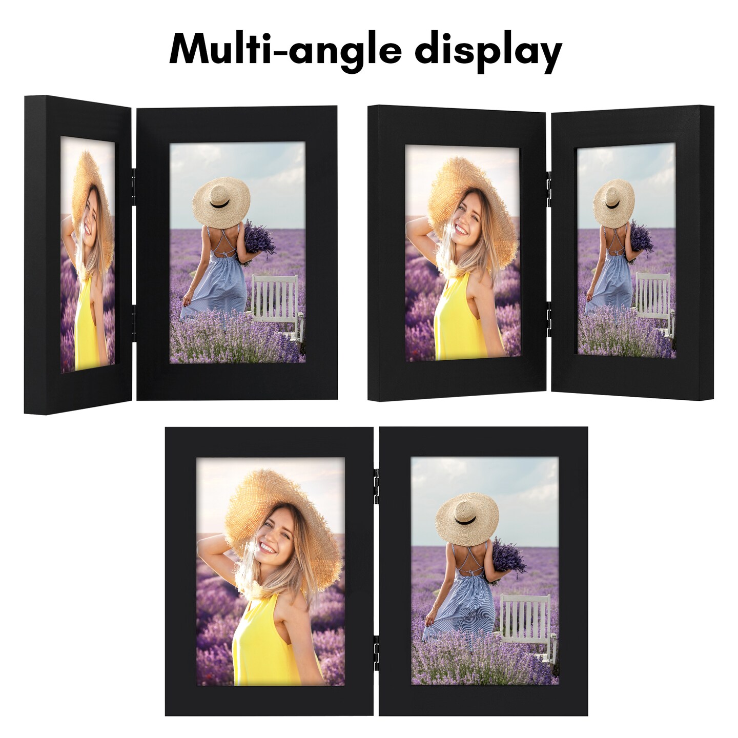 Americanflat Tri-Folding Picture Frame - Displays Two Photos at Once - Double Hinged Picture Frame - Shatter Resistant Glass - Tabletop Display Picture Frame - Black