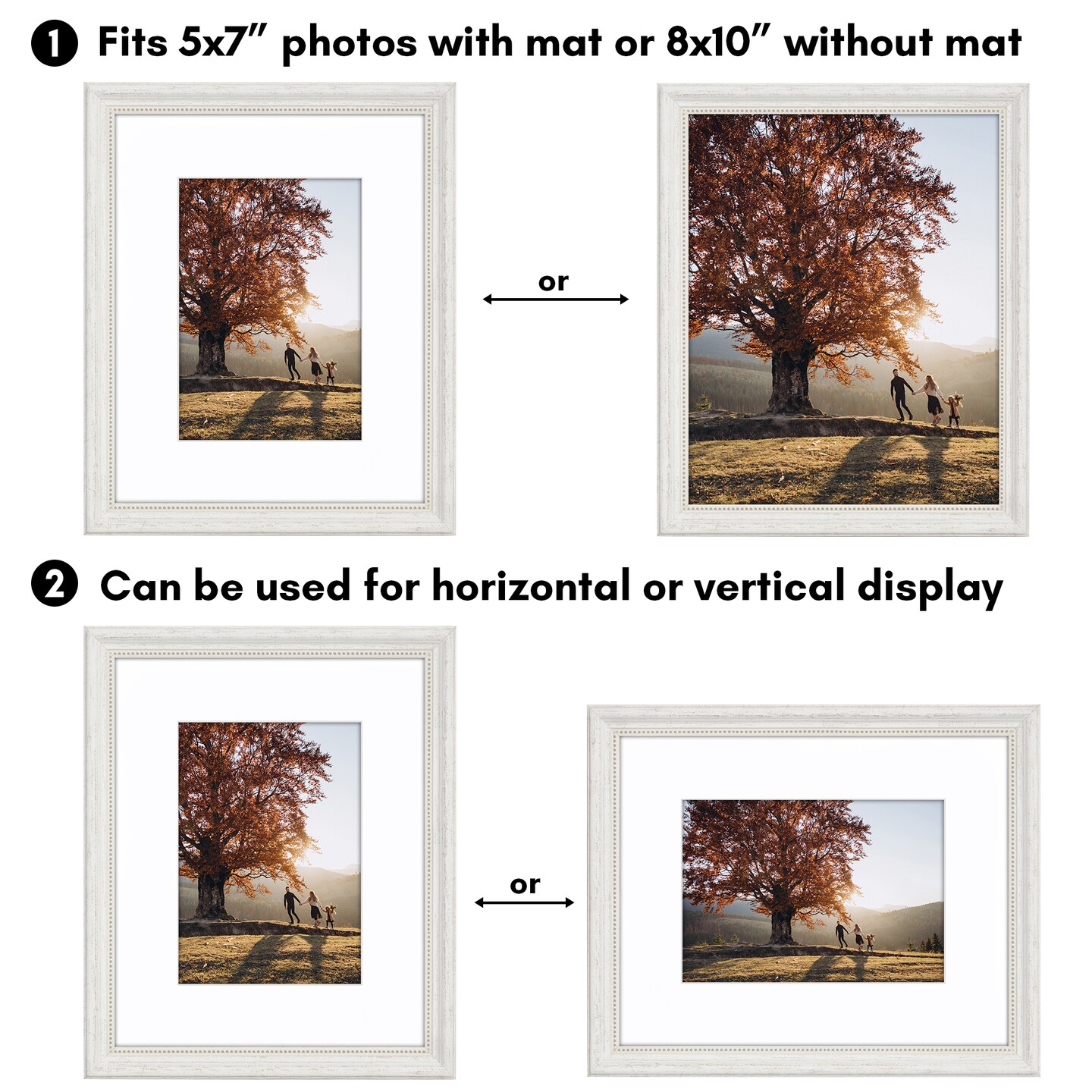 Americanflat Vintage Frames - Picture Frame with Beaded Accents - Use with Included Mat - Distressed Finish