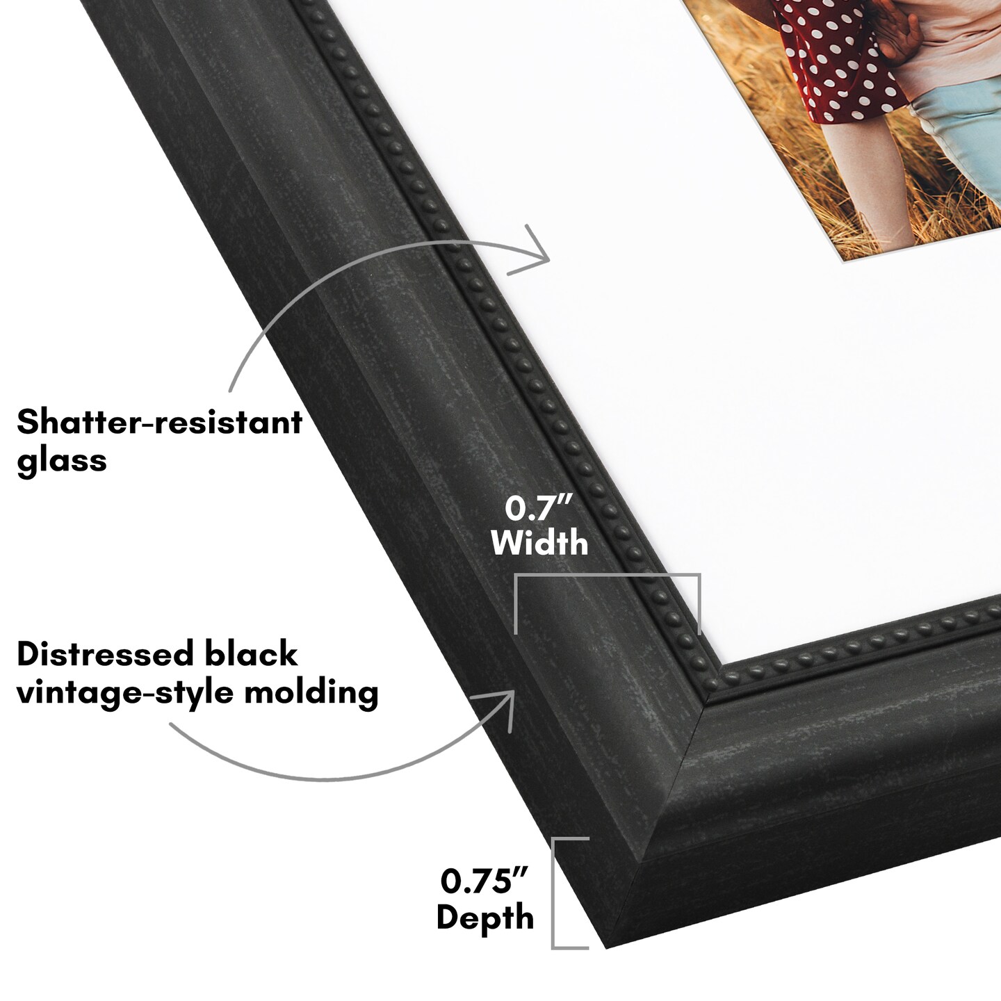 Americanflat Vintage Frames - Picture Frame with Beaded Accents - Use with Included Mat - Distressed Finish