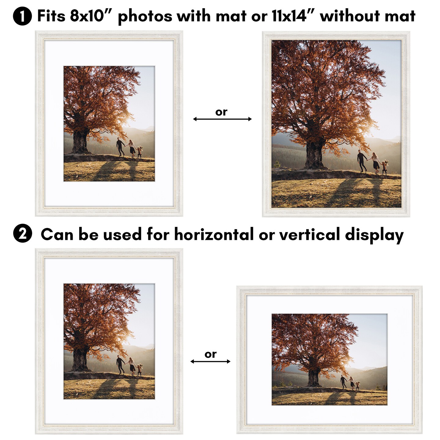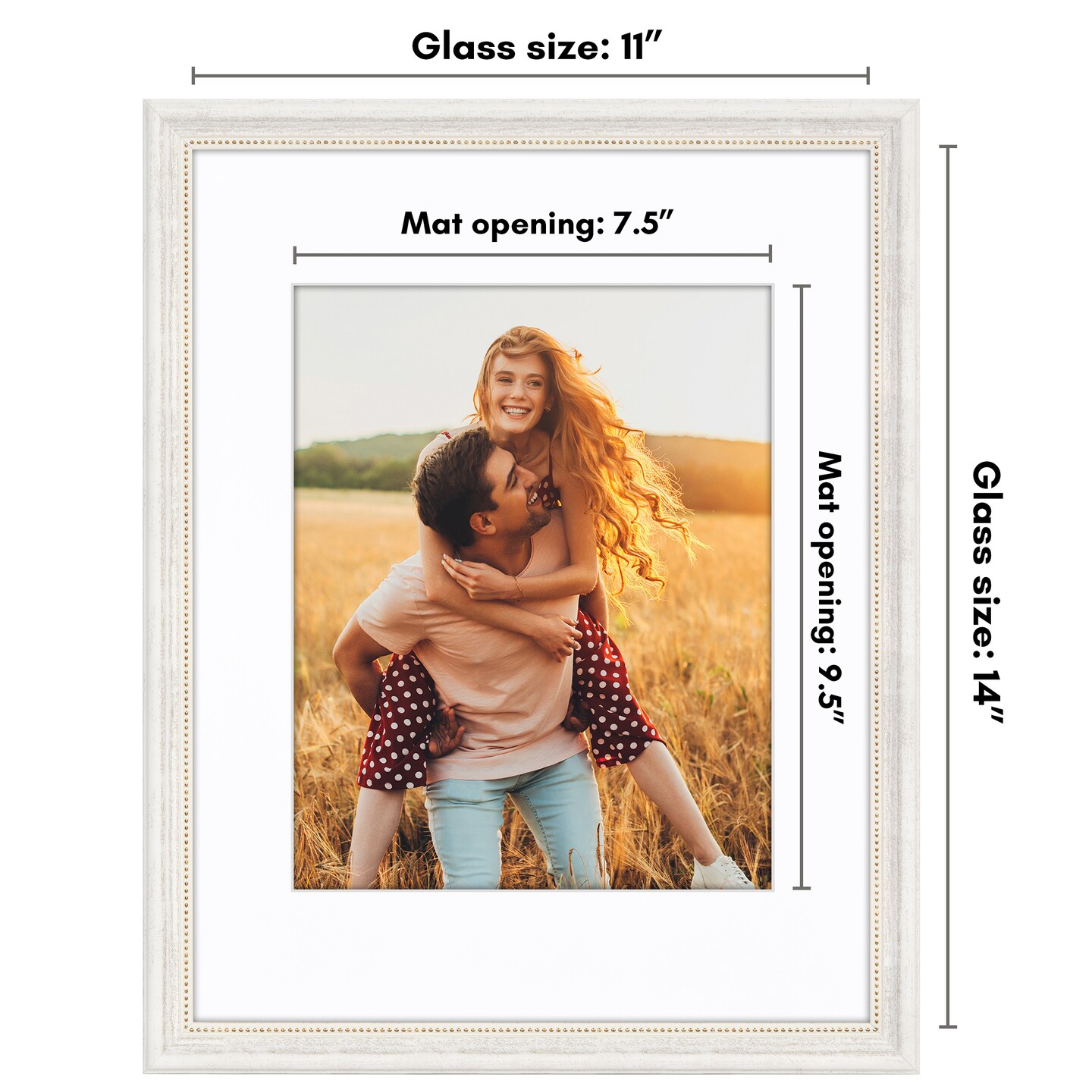 Americanflat Vintage Frames - Picture Frame with Beaded Accents - Use with Included Mat - Distressed Finish