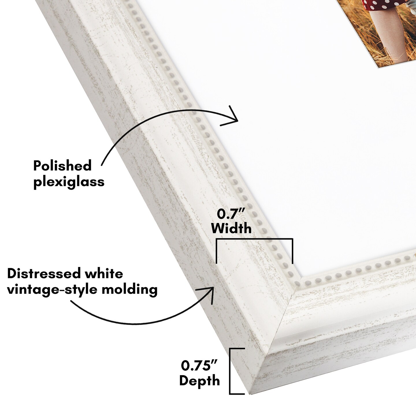 Americanflat Vintage Frames - Picture Frame with Beaded Accents - Use with Included Mat - Distressed Finish