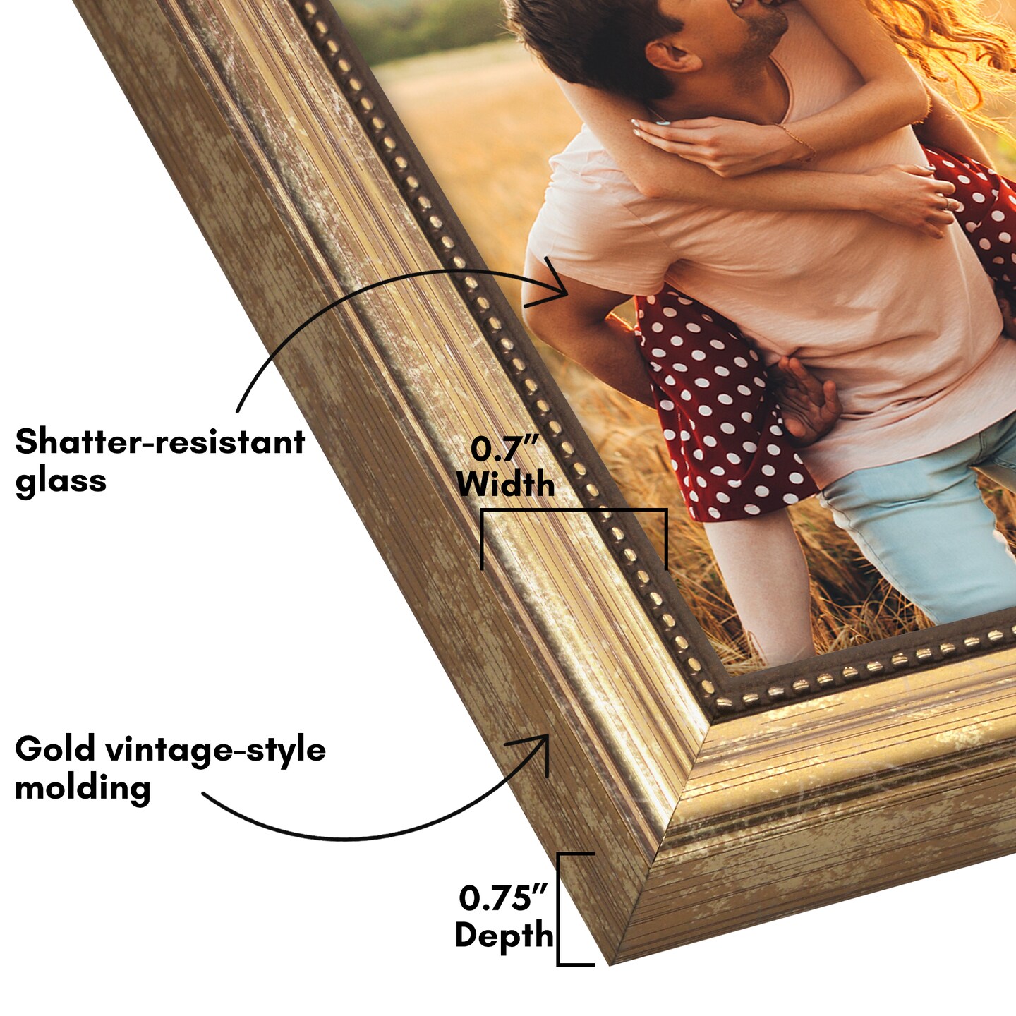 Americanflat Vintage Picture Frame with Beaded Accents with Shatter Resistant Glass and Easel Stand