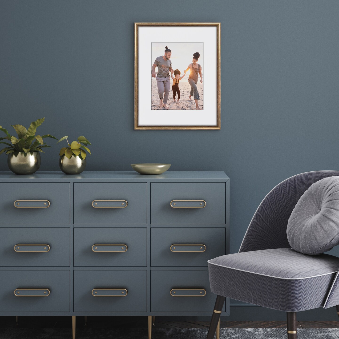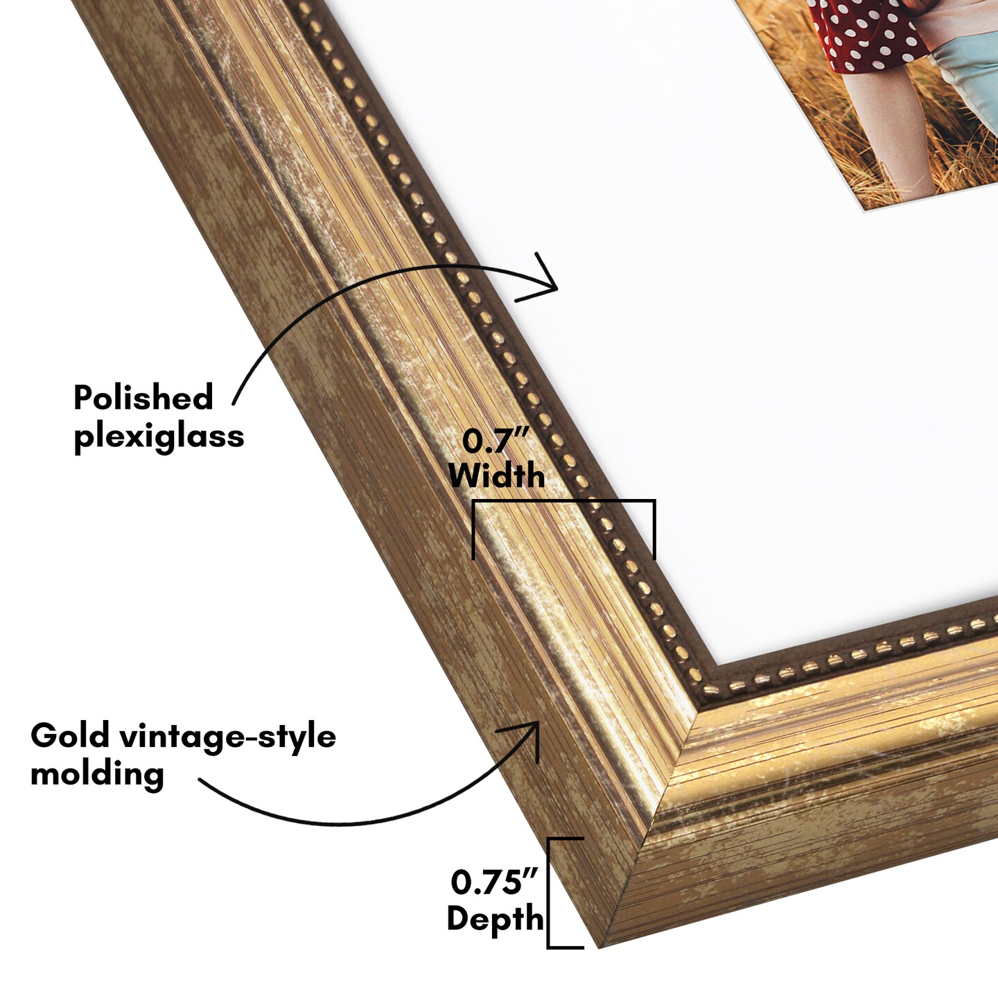 Americanflat Vintage Picture Frame with Mat and Beaded Accents with Shatter Resistant Glass