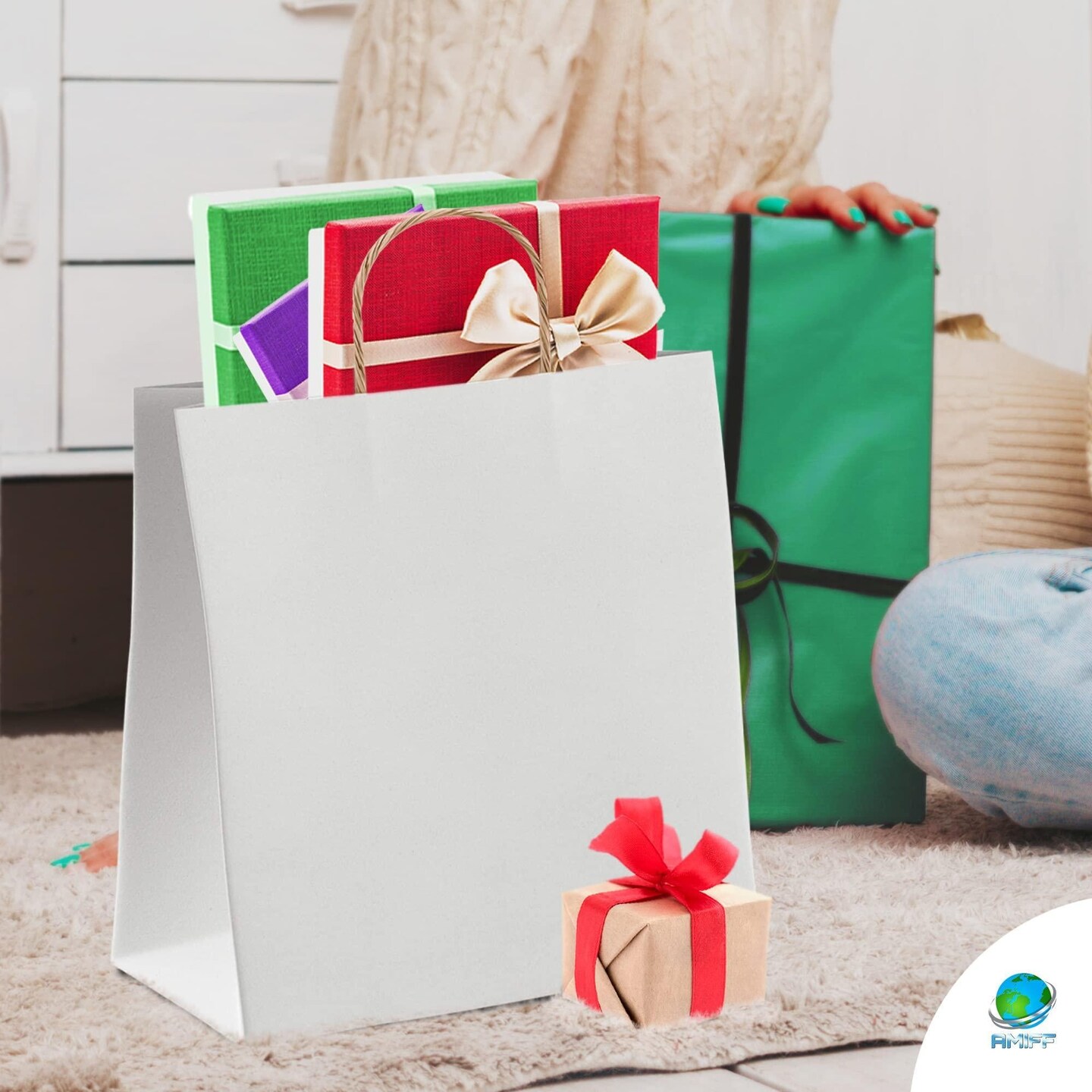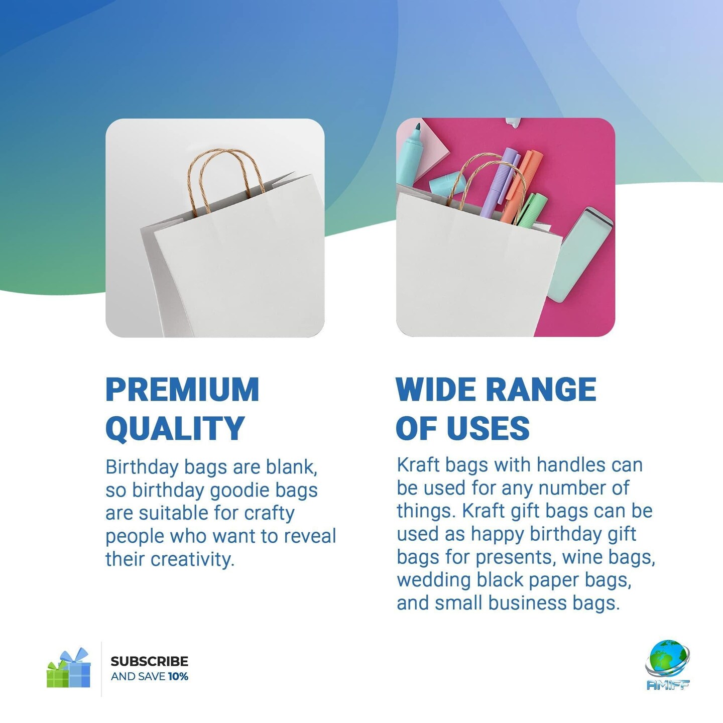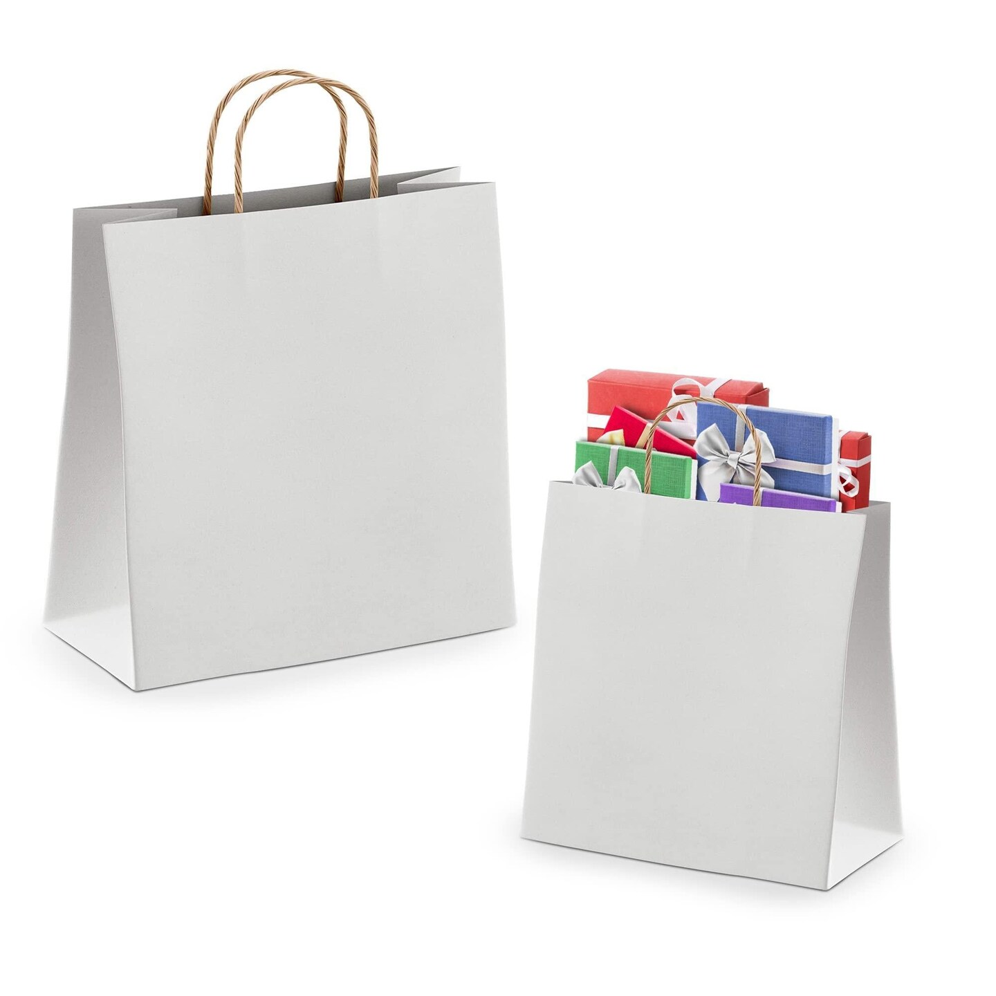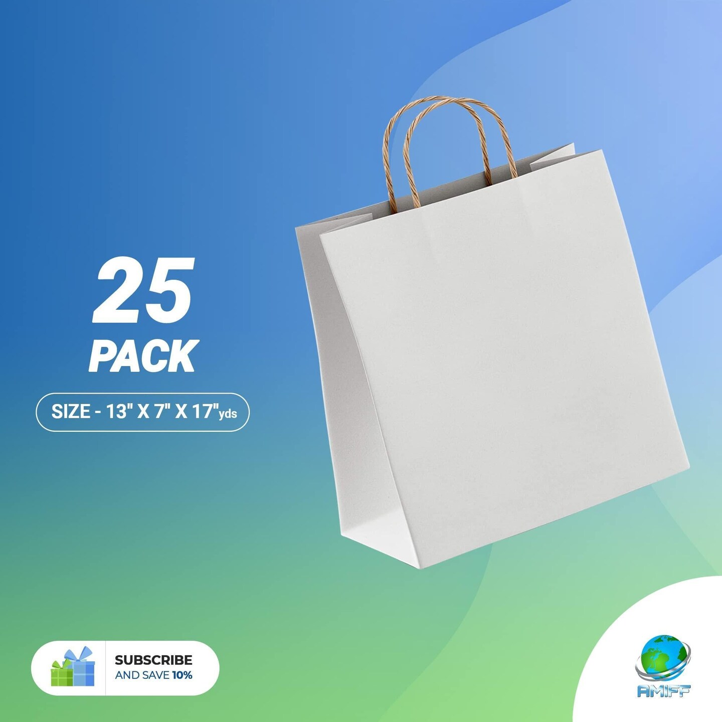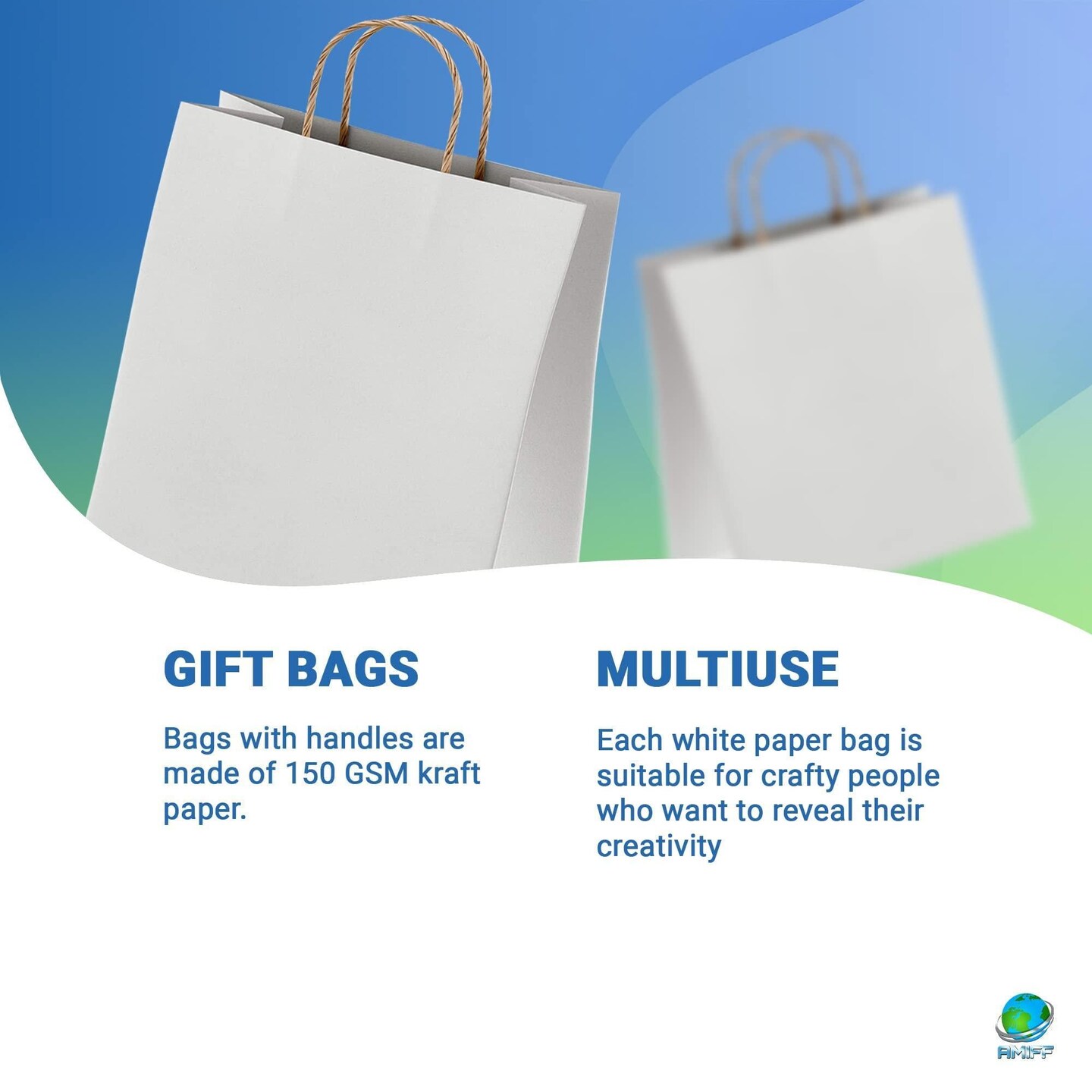 AMIFF White Shopping Bags with Handles 13 x 7 x 17 Pack of 25 White Gift Bags with Handles Bulk 150 GSM White Paper Bags with Handles Bulk White Bags with Handles White Kraft Bags with Handles