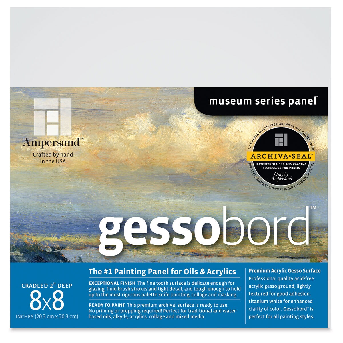 Ampersand Gessobord - 8" x 8", 2" Cradled