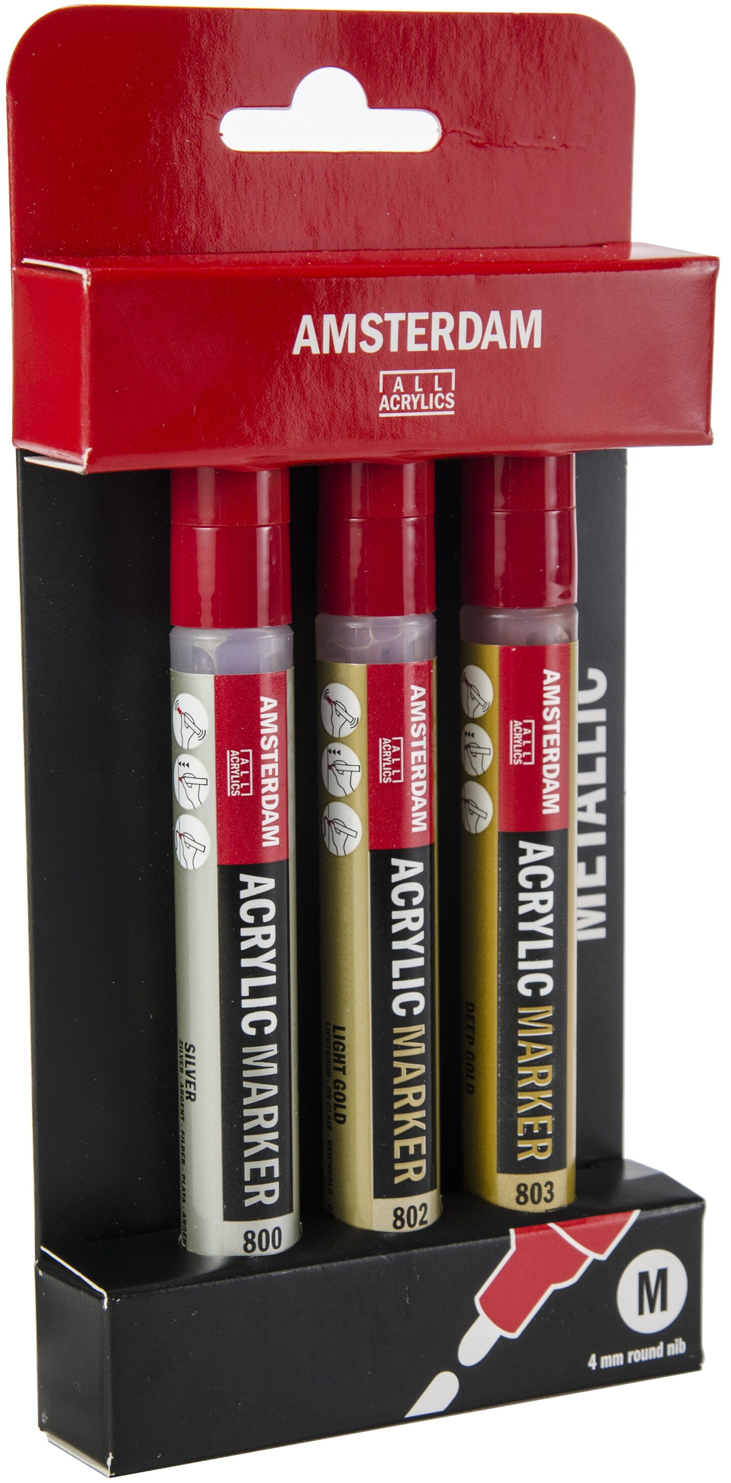 Amsterdam Acrylic Marker Set 4mm 3/Pkg-Metallic