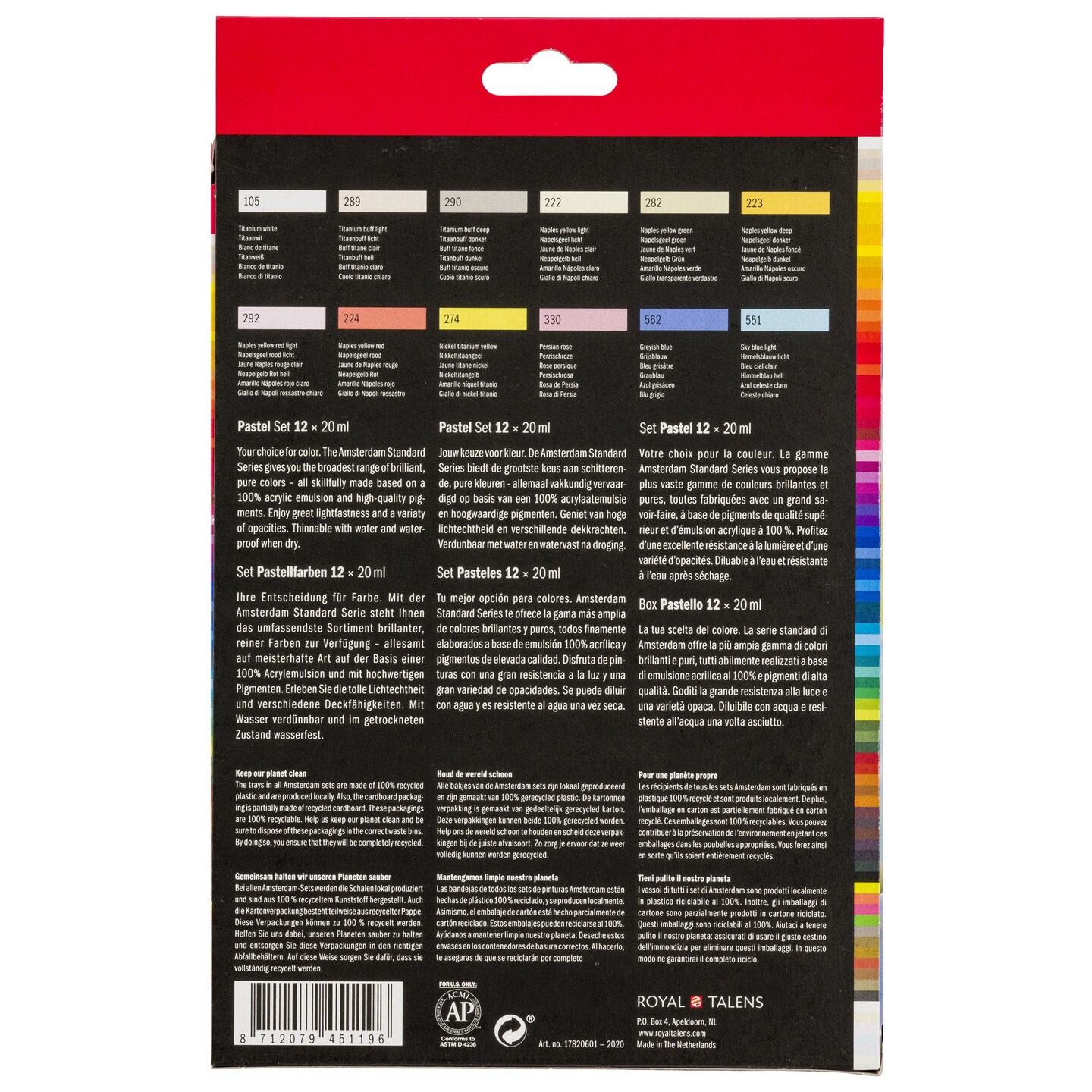 Amsterdam Standard Acrylic Paint Set 20ml 12/Pkg-Pastel