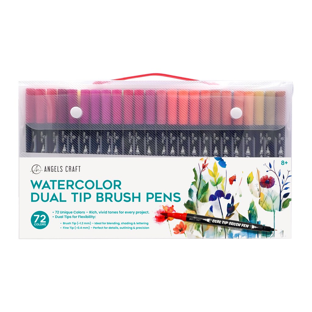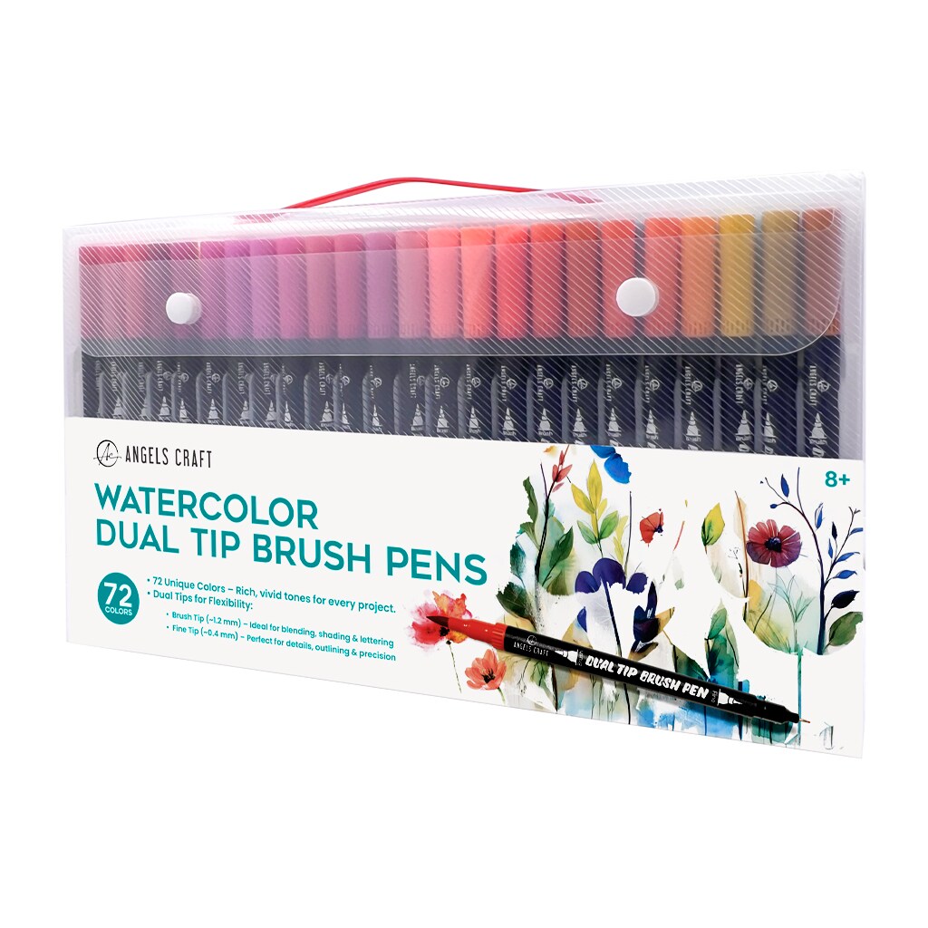 Angels Craft 72 Colors Watercolor Dual Tip Pens, Brush Tip & Fine Tip Set Includes Storage/Travel Case