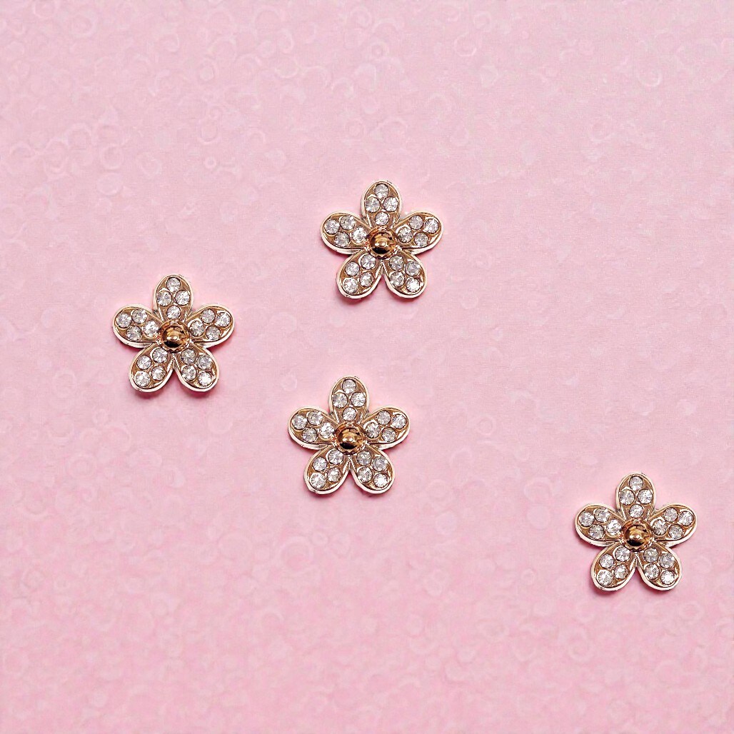 Angels Craft Gold Flower with Clear Rhinestone Embellishment Stickers