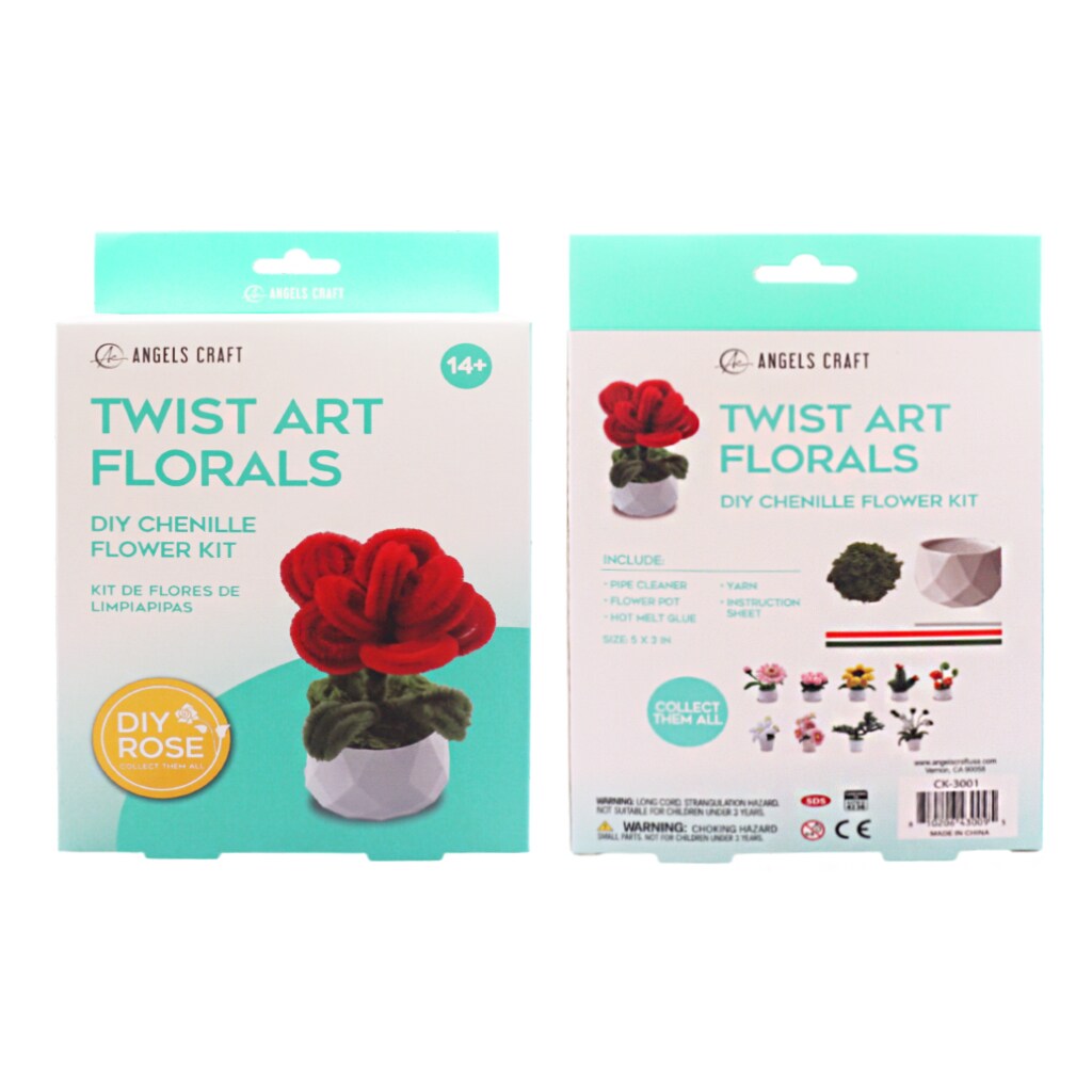 Angels Craft Twist Art Florals DIY Chenille Flower Kit – Pipe Cleaner Craft Kit for Teens & Adults | Flowers, Plants & Decorative Styles | Multiple Designs | Ages 14+