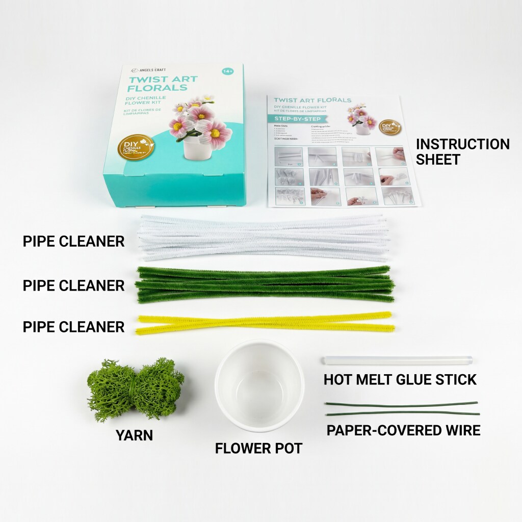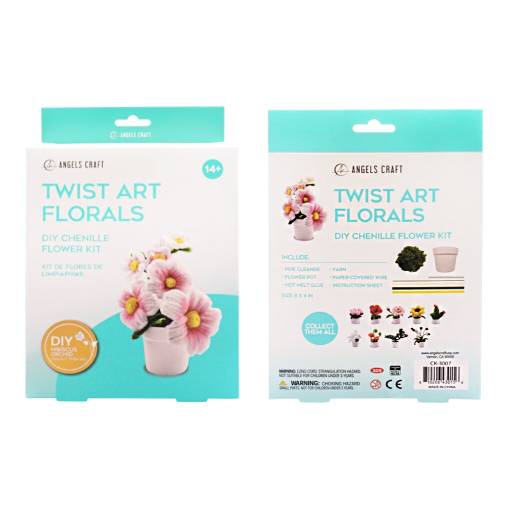 Angels Craft Twist Art Florals DIY Chenille Flower Kit – Pipe Cleaner Craft Kit for Teens & Adults | Flowers, Plants & Decorative Styles | Multiple Designs | Ages 14+