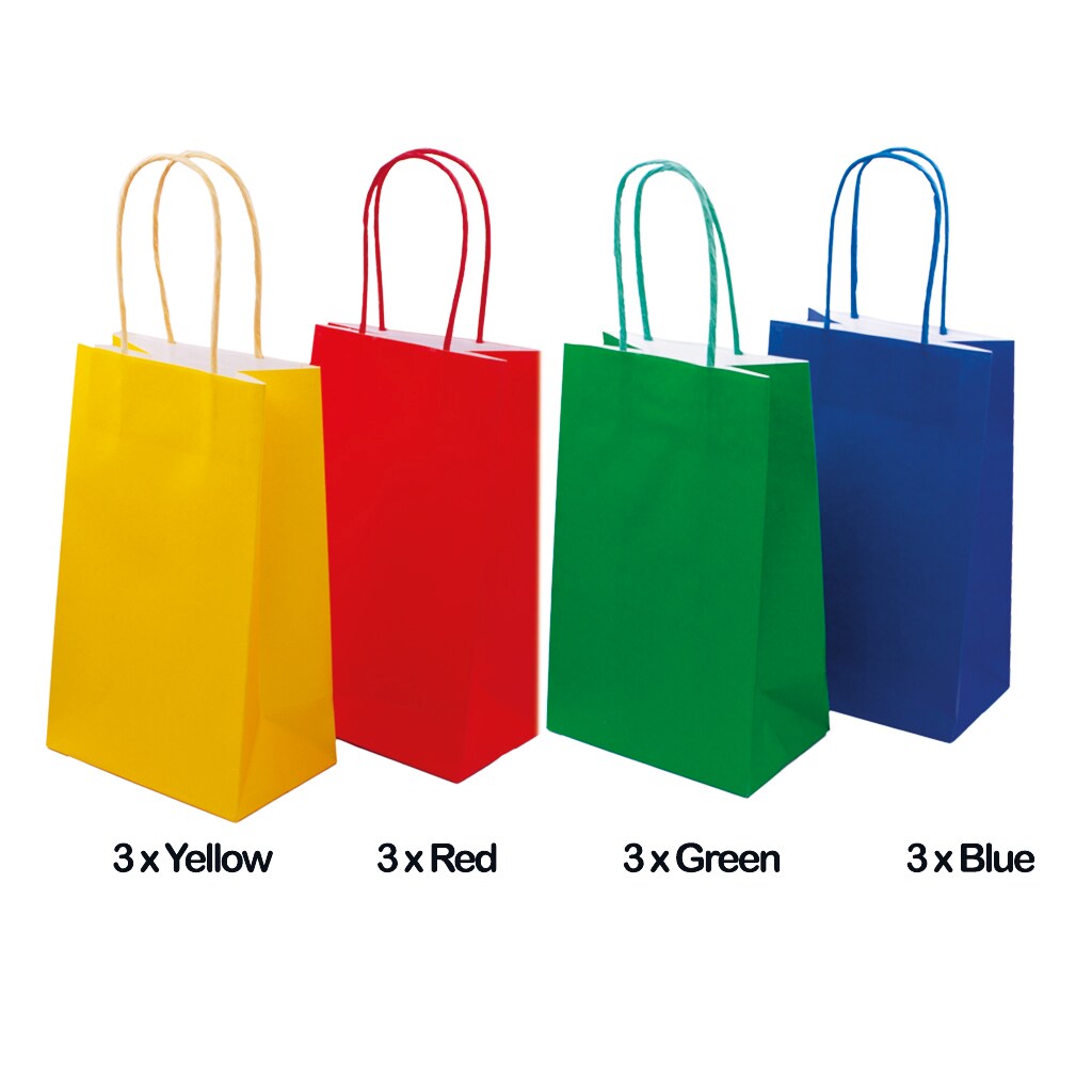 Angels Special Occasions 12 Pack Kraft Bag 8" x 5" - Blue, Yellow, Green & Red Assorted Colors