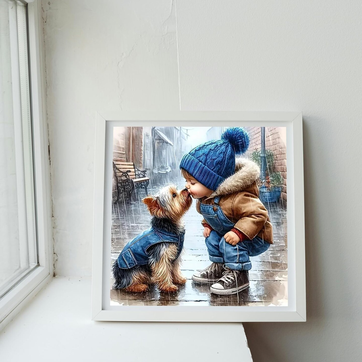 Animal Dog Stamped Cross Stitch Kits for Beginners,Kiss Dog Needlepoint Counted Cross Stitch Kits for Adults,Easy Prestamped Boy Pattern Needlepoint Kit Crafts for Home Decor Gifts 14X14 Inch.