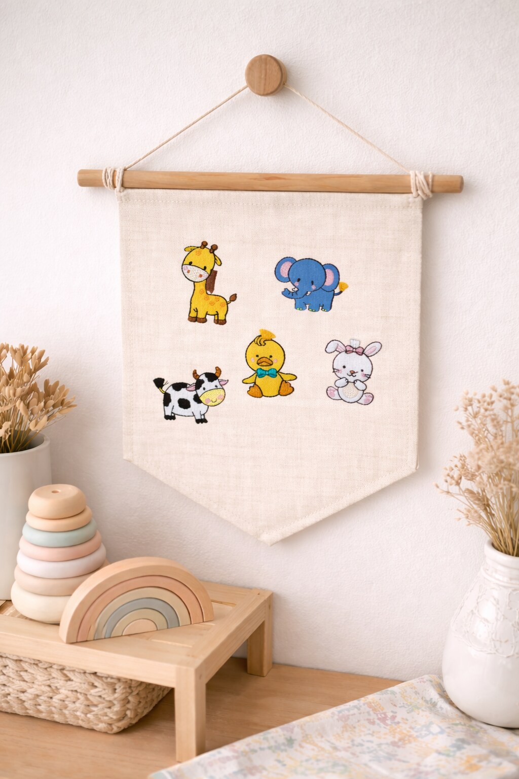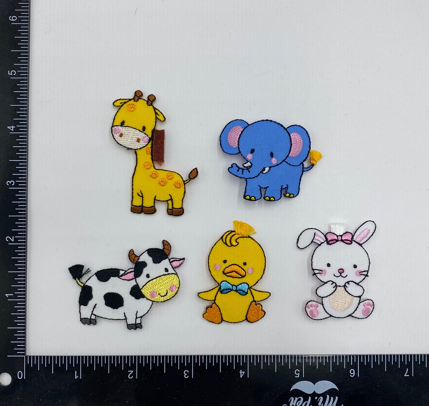 Animal Iron-On Patch Set – 2 Inch Embroidered Giraffe, Elephant, Cow, Duck & Bunny Appliques for Crafts and Decor (Set of 5)