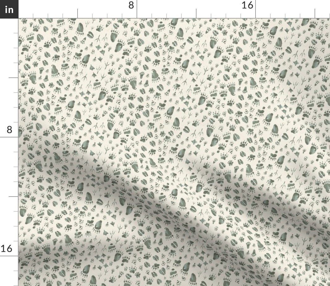 Animal Tracks Nature Hiking Wilderness Woodland Animals Green Forest Animals National Park Grizzly Bear Footprints Paw Prints Birds Critters Custom Printed Fabric by Spoonflower Various Fabrics by the Yard or Fat Quarter