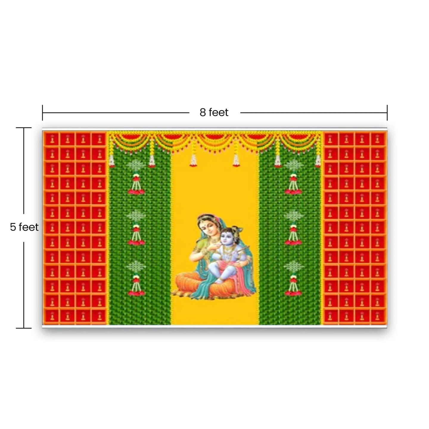 Annaprasana Backdrop 5x8 Feet Indian Traditional Cloth Backdrop Baby Shower Decor Indian Pooja Wall Decor Indian Wall Art Photo Decor Banner Decorative Pooja Cloth Seemantham Favor