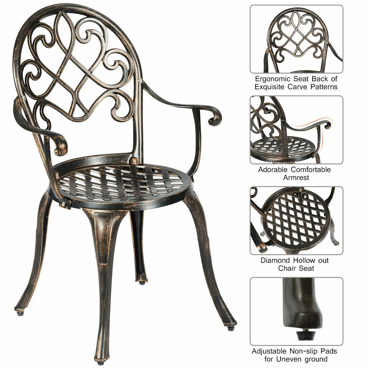 Antique Bronze 3-Piece Bistro Set 2 Chairs 1 Table with Ice Bucket Outdoor