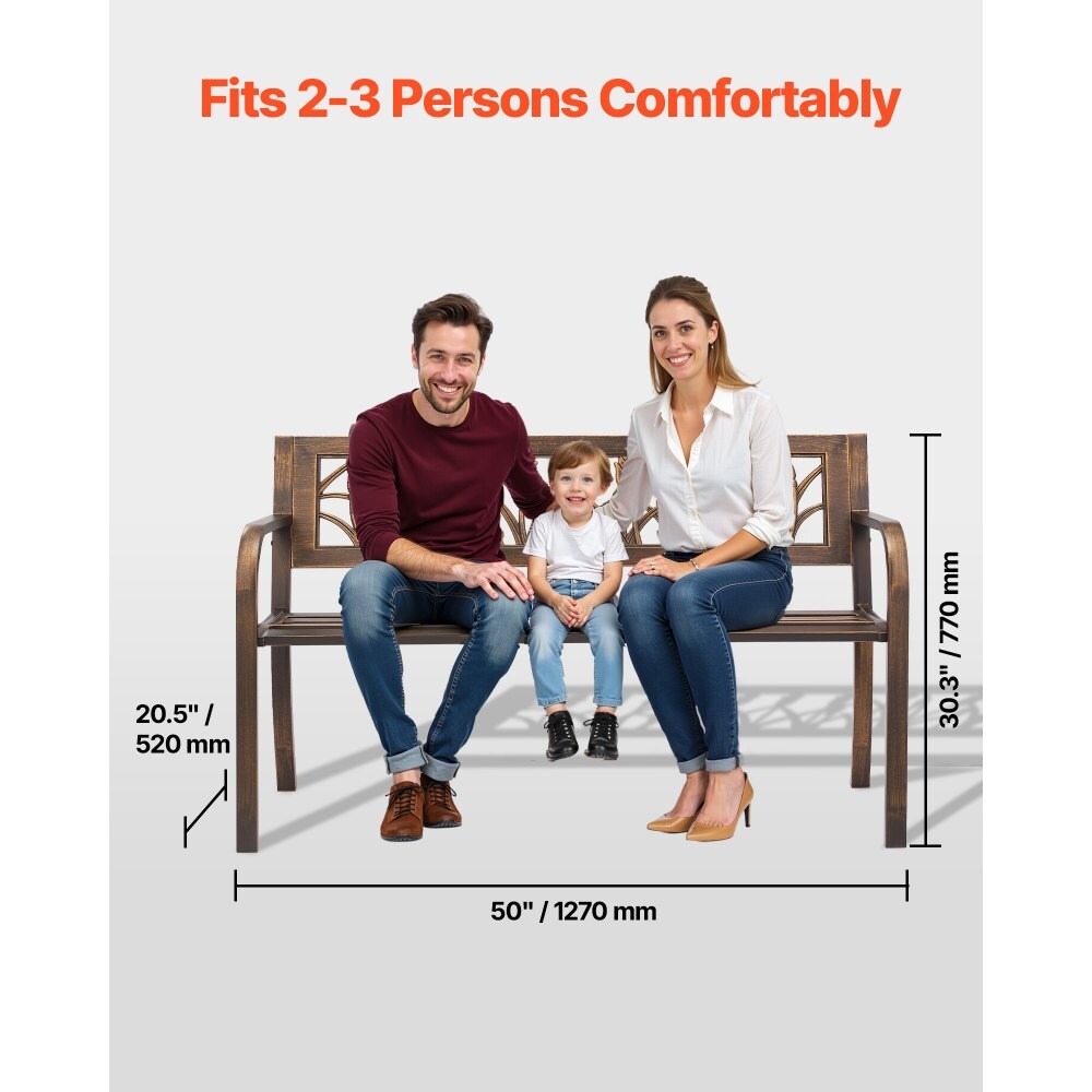 Antique Bronze Outdoor Patio Bench with Steel Frame and Floral PVC Backrest