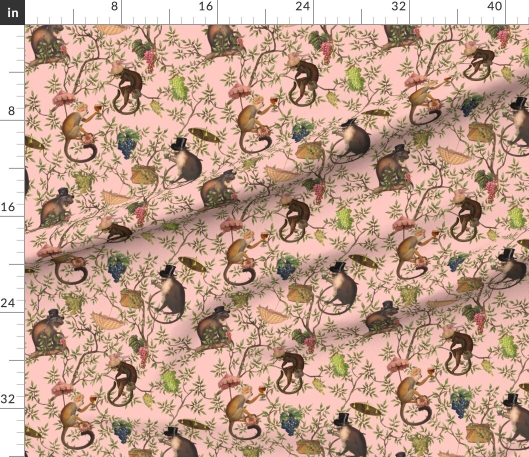 Antique Chinoiserie Whimsical Drunk Monkey Marie Antoinette Rococo Garden Floral Custom Printed Fabric by Spoonflower Various Fabrics by the Yard or Fat Quarter