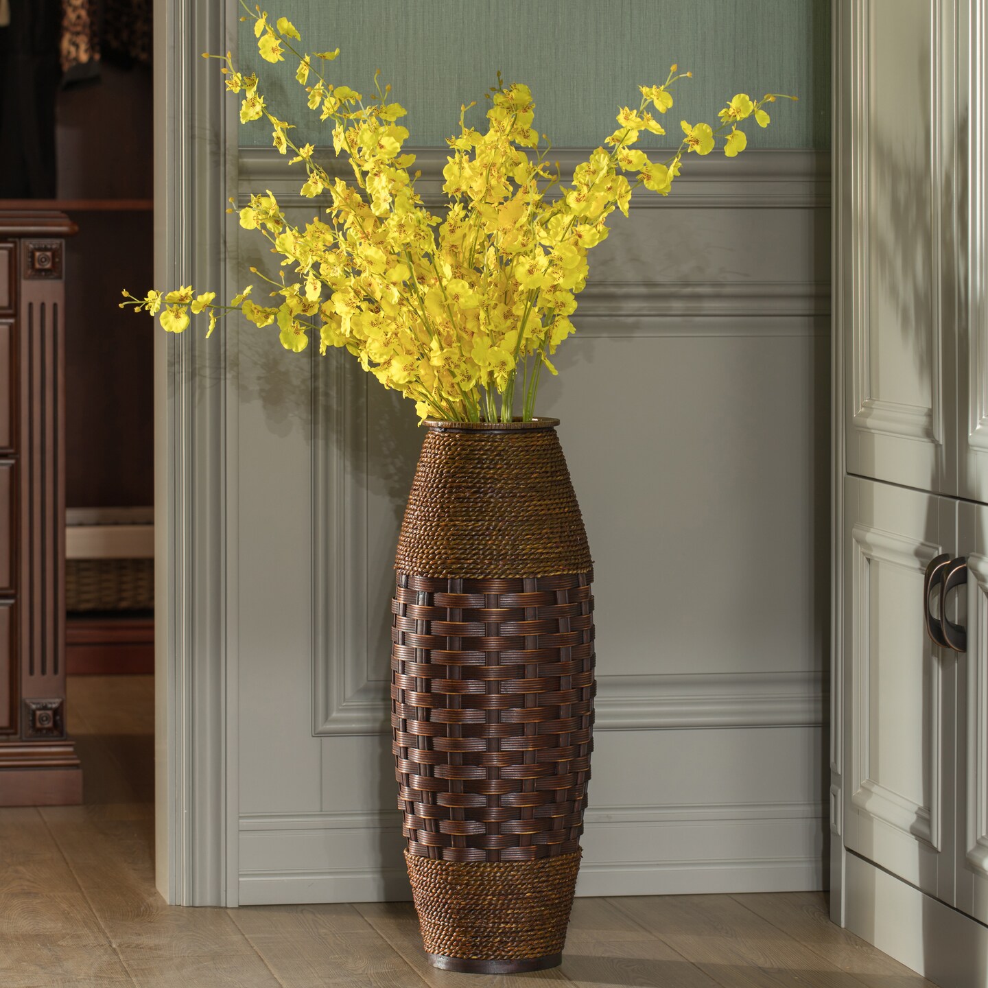 Antique Cylinder Style Floor Vase For Entryway or Living Room, Bamboo Rope, Brown 26 Tall