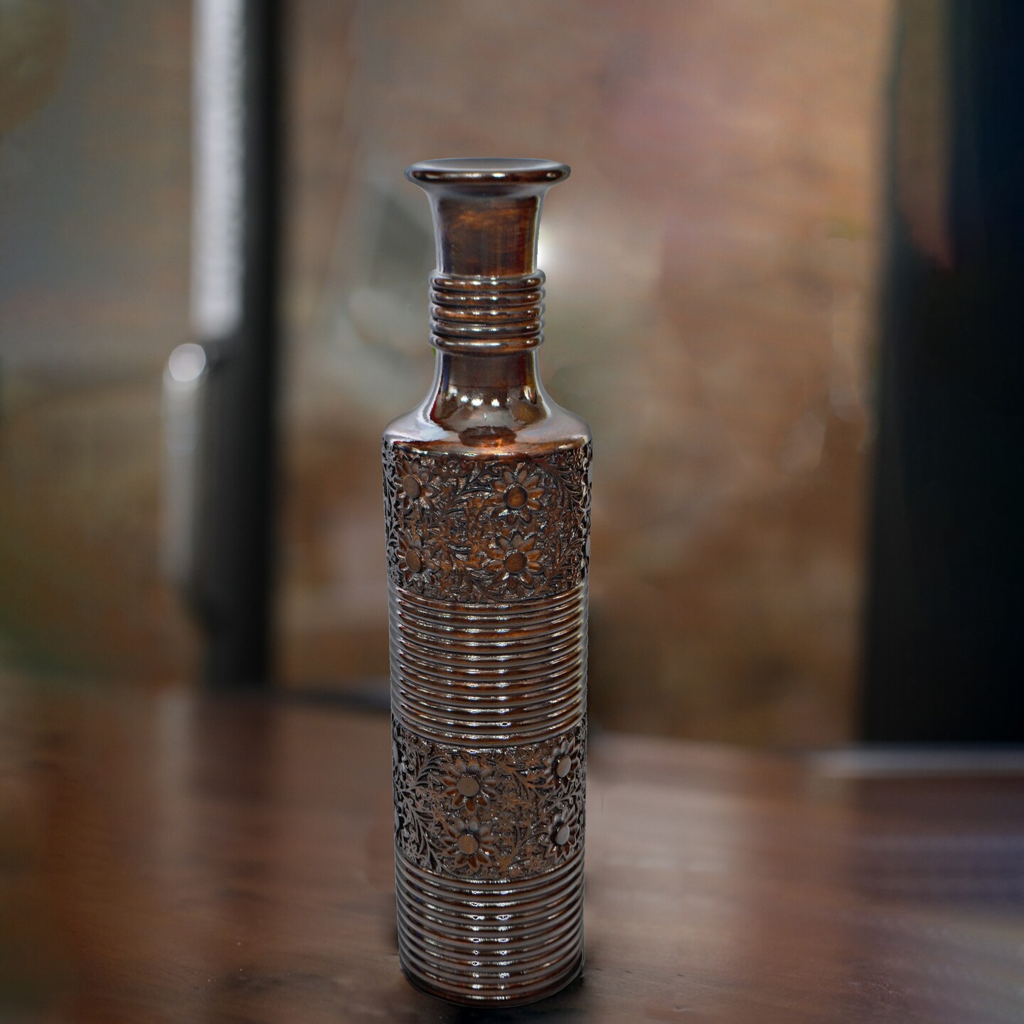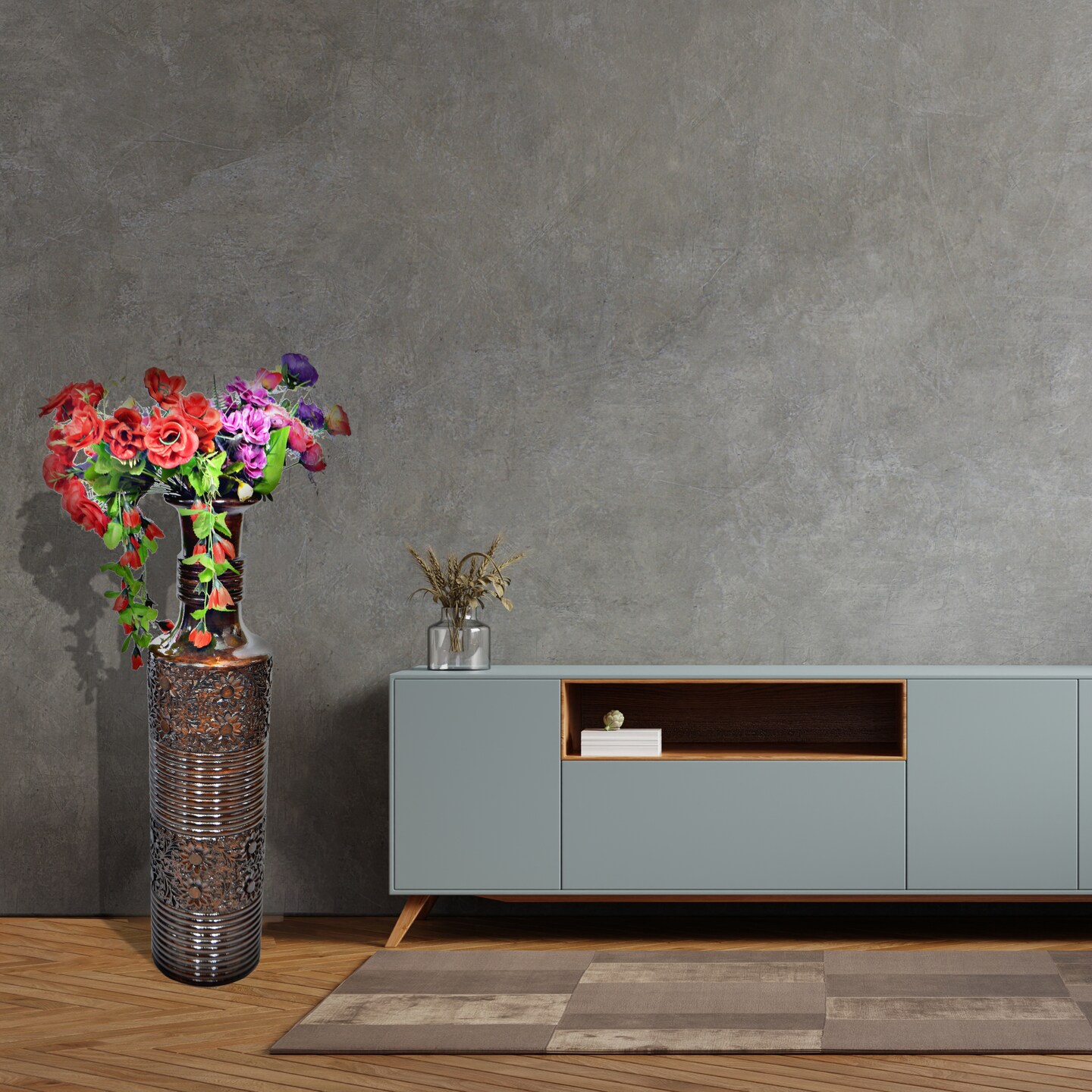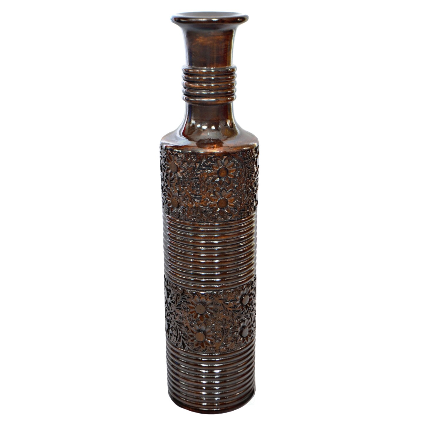 Antique Decorative Brown Hand Curved Mango Wood Floor Flower Vase with Unique Textured Pattern, 36 Inch